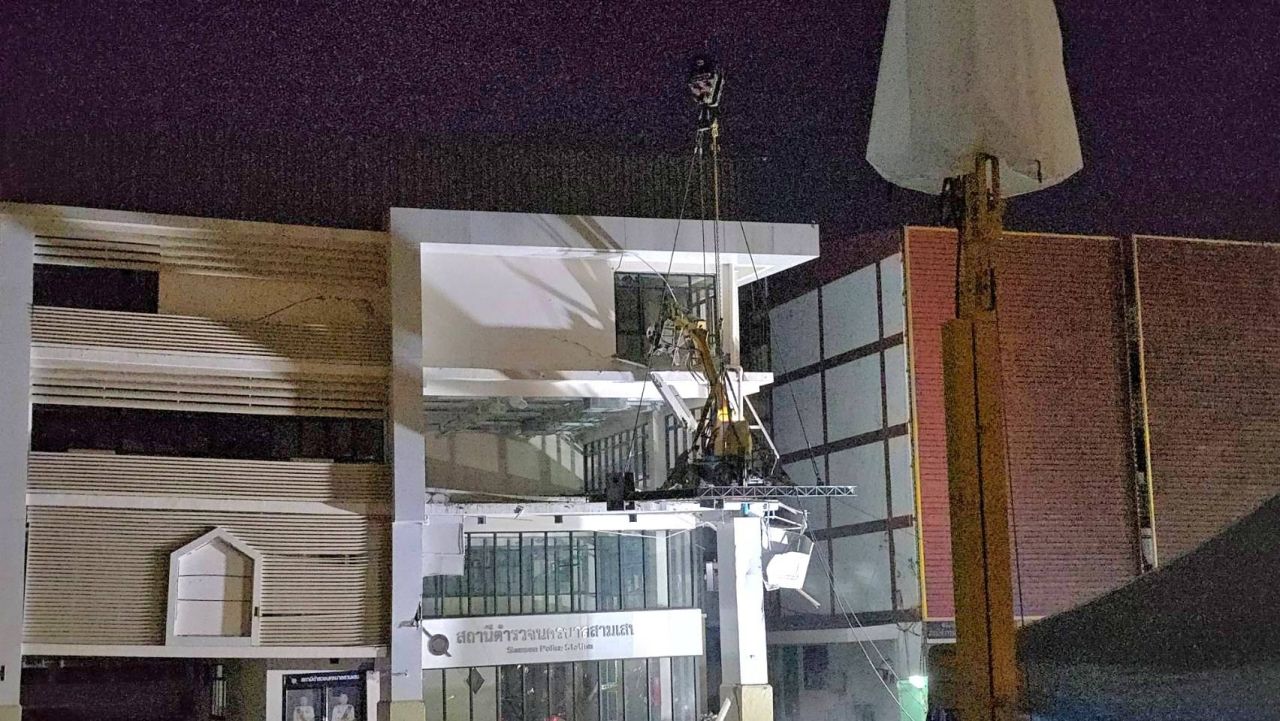 เมื่อเวลา 20.00 น. วันที่ 4 ตุลาคม 2568 ผู้สื่อข่าวรายงานว่า ภายหลังเจ้าหน้าที่ใช้โซ่เลื่อย เลื่อยเสาเข็มที่หัก บริเวณใต้อาคาร สน.สามเสน เมื่อช่วงเย็นที่ผ่านมา ต่อมาเจ้าหน้าที่ใช้รถเครน ยกหุ่นยนต์รื้อถอนระยะไกล มีหัวเป็นตัวหนีบคล้ายก้ามปู หุ่นยนต์ดังกล่าวมีลักษณะคล้ายรถแบ็กโฮขนาดเล็ก ทำการรื้อถอนอาคาร สน.สามเสน ฝั่งเดียวกับที่รื้อใช้โซ่เลื่อยตัดเสาเข็ม