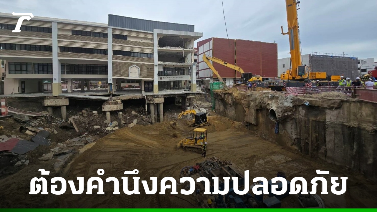 นายวัชรพล กล่าวต่อไปว่า ส่วนการทำงานในช่วงบ่ายวันนี้ หลังจากปรับพื้นที่แล้ว จะนำเครื่องมือลงไปติดตั้งเพื่อทำ TAM Grout โดยการฉีดน้ำยาพิเศษลงไปในดินเพื่อปรับปรุงคุณภาพดินให้แข็งแรงขึ้น สำหรับการรื้อตัวอาคารนั้น จะดำเนินการรื้อทั้งหมด แต่จะค่อยๆ รื้อจากฝั่งขวา พร้อมประเมินความเสี่ยงระหว่างรื้อด้วยเพื่อความปลอดภัย ทั้งนี้ช่วงระหว่างรื้ออาคารนั้นจะสลับกับการถมทรายทางด้านล่างด้วย ส่วนการทรุดตัวของอาคาร ขณะนี้พบว่าทรุดตัวของตอม่อลงจากเดิมประมาณ 20-50 ซม.แล้ว แต่ไม่ใช่ทั้งหมด