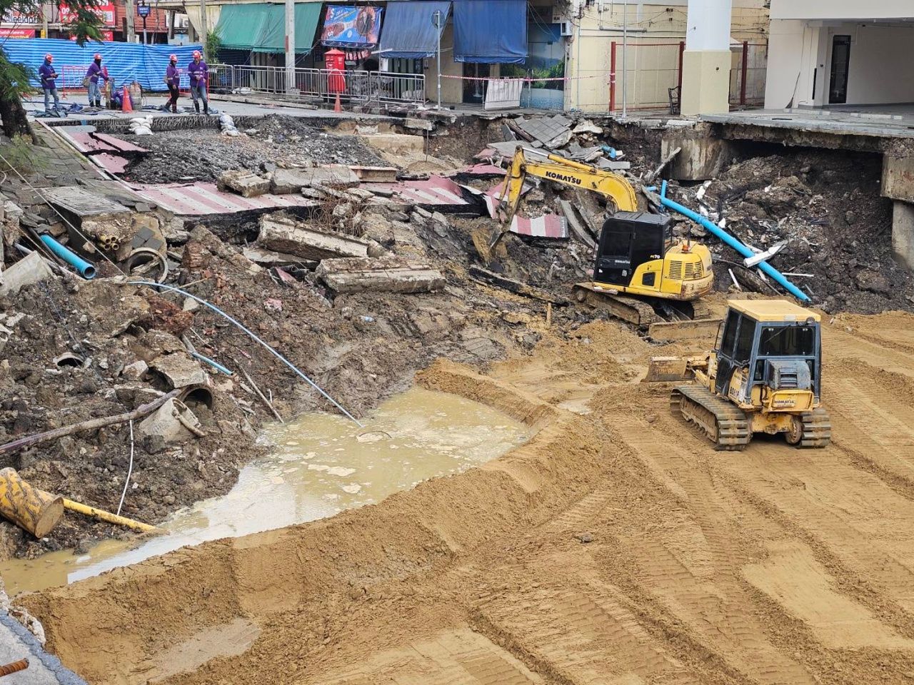 ด้านนายปฏิเวช เหระยัง ผู้อำนวยการ กองบริหารงานก่อสร้าง 4 การไฟฟ้าขนส่งมวลชนแห่งประเทศไทย (รฟม.) กล่าวว่า ผู้รับจ้างอยู่ระหว่างการถมทราย โดยถมได้ประมาณ 2,500 ลูกบาศก์เมตร ได้ความสูงจากระดับเดิม ประมาณ 2 เมตร ลึกจากระดับผิวจราจรเดิม ประมาณ 4.5 เมตร รวมถึงได้ติดตาม ตรวจสอบ และประเมินสภาพอาคาร สน.สามเสน อาคารแฟลตตำรวจและอาคารโดยรอบอย่างต่อเนื่อง เพื่อความปลอดภัยสูงสุด โดยทางโครงการฯ ยังคงเร่งดำเนินการและคำนึงถึงความปลอดภัยอย่างต่อเนื่อง เพื่อเร่งคืนสภาพพื้นผิวการจราจรต่อไป.