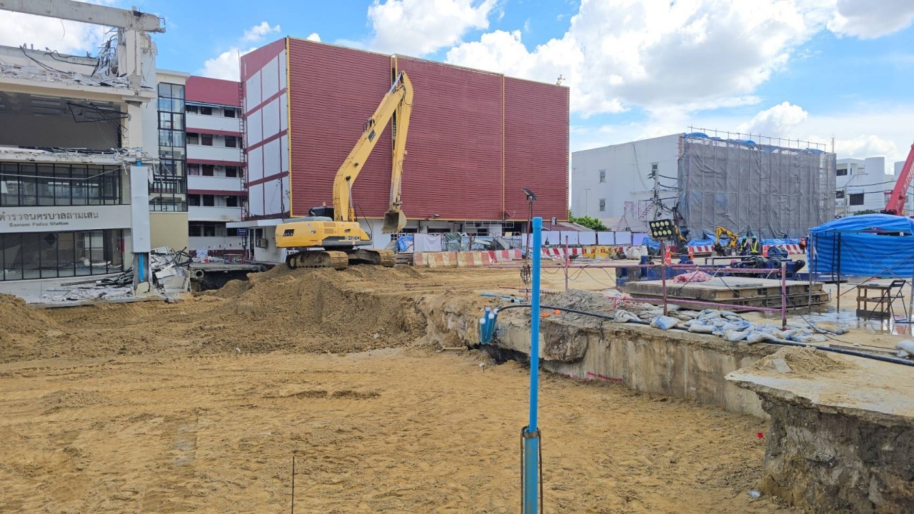 อย่างไรก็ตาม ผู้สื่อข่าวรายงานว่า ขณะนี้ เจ้าหน้าที่หยุดการรื้อถอนอาคาร สน.สามเสนชั่วคราว เพื่อเสริมเสถียรภาพของดิน และเร่งถมทรายลงหลุม และดันทรายเข้าไปใต้อาคาร สน.สามเสน ให้ได้ระดับที่เหมาะสม และเมื่อประเมินสภาพหลุมดังกล่าว มีเสถียรภาพ จะมีการถมหินคลุกลงไปในหลุม จึงจะกลับมารื้อถอนอาคาร สน.สามเสนต่อไป