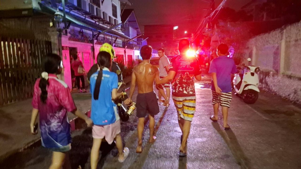 ด้านนายขวัญชัย หรือ ก้องสยาม กล่าวว่า หลังจากออกไปซื้ออาหารและกลับมา พบว่าไฟกำลังลุกไหม้ รีบวิ่งเข้าไปนำข้าวของออกมา ก่อนถูกไฟลวกบริเวณหลัง เบื้องต้นอาการไม่รุนแรง