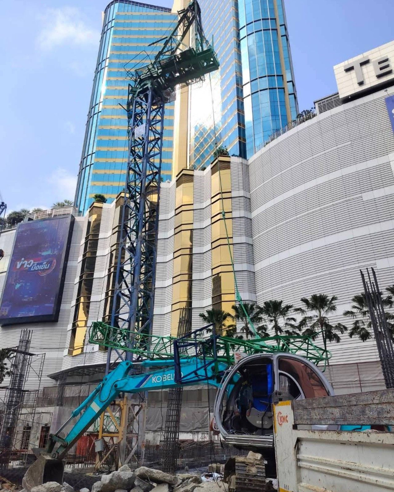 เกิดเหตุระทึก แขนทาวเวอร์เครนหักหล่นจากที่สูง ภายในพื้นที่ก่อสร้างใกล้ห้างดังย่านอโศก ส่งผลให้คนงานเมียนมา บาดเจ็บ 2 ราย หนึ่งในนั้นอาการสาหัส