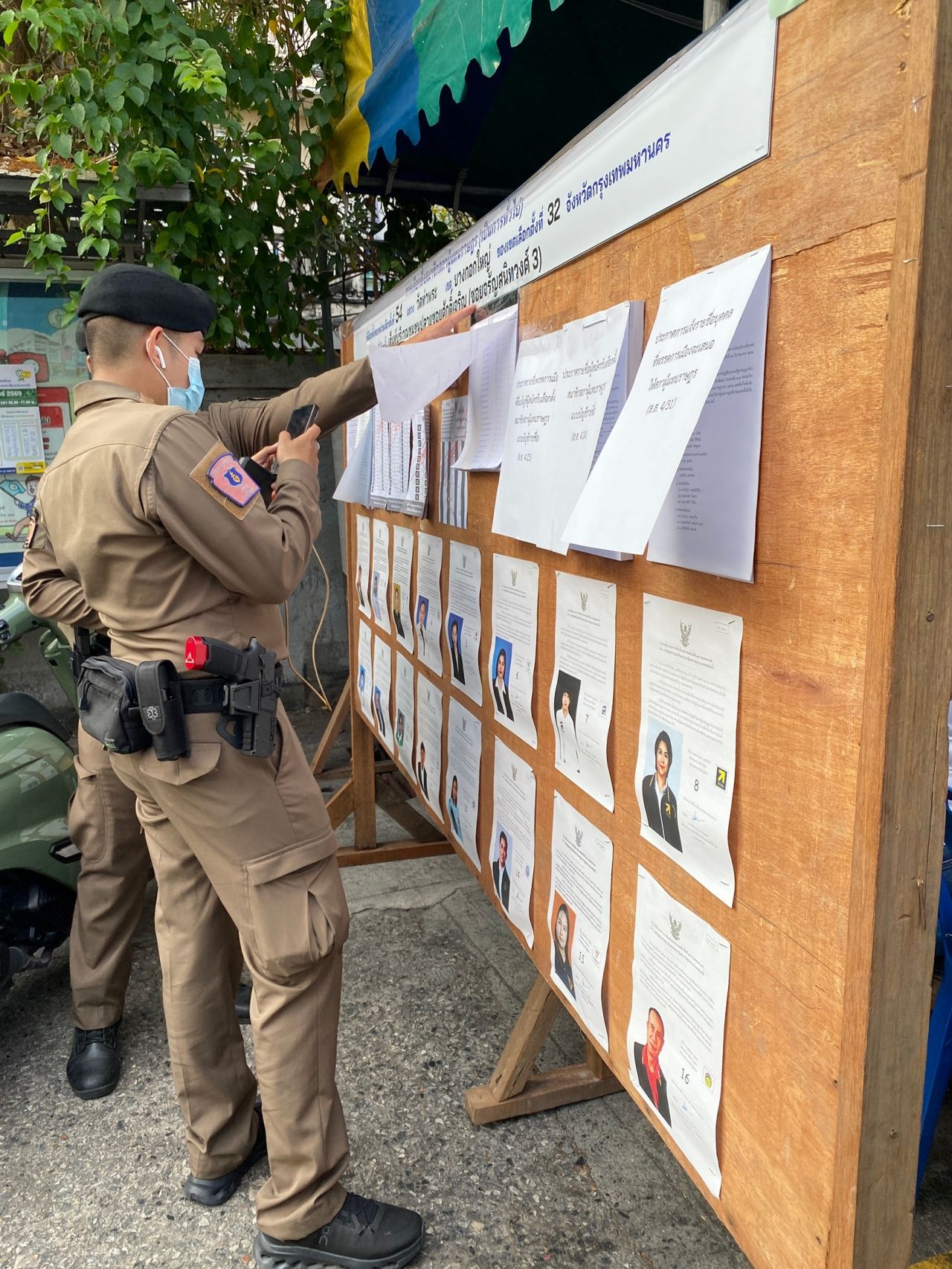 ขณะที่เขตเลือกตั้งที่ 32 บางกอกใหญ่ กรุงเทพมหานคร ประชาชนต่อแถวยาว เพื่อรอใช้สิทธิเลือกตั้ง และลงประชามติ โดยมีเจ้าหน้าที่ตำรวจ สน.ท่าพระ มาคอยดูแลรักษาความเป็นระเบียบเรียบร้อย