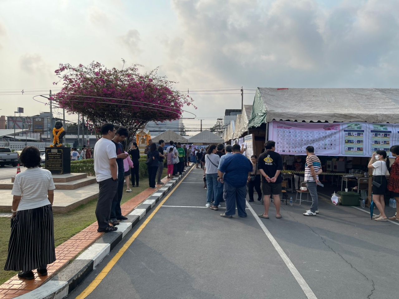 เช่น เขตเลือกตั้งที่ 19 สะพานสูง กรุงเทพมหานคร ประชาชนเดินทางมาใช้สิทธิอย่างต่อเนื่อง