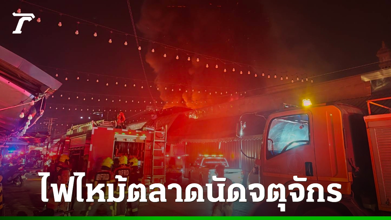เวลา 22.42 น. วันที่ 9 ก.พ. 69 ผู้สื่อข่าวได้รับแจ้งจากศูนย์วิทยุผ่านฟ้า และสายด่วน 199 ว่าเกิดเหตุเพลิงไหม้บริเวณตลาดนัดจตุจักร (ประตู1) ในที่เกิดเหตุพบว่าเป็นร้านค้าภายในตลาด.