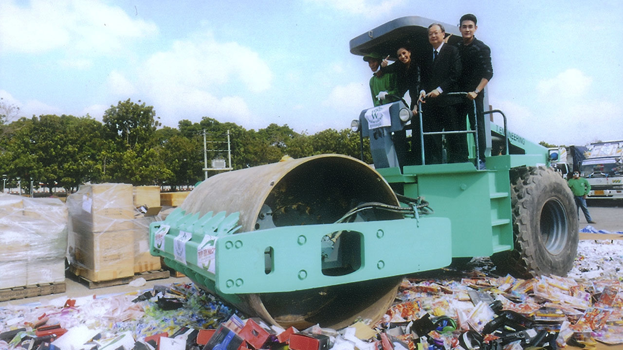 คณะอนุกรรมการปราบปรามการละเมิดทรัพย์สินทางปัญญานำของกลางละเมิดลิขสิทธิ์ อาทิ เสื้อผ้า กระเป๋า เข็มขัด รองเท้า นาฬิกา โทรศัพท์มือถือ แผ่นซีดี/วีซีดี แว่นตา เครื่องสำอาง ฯลฯ ที่คดีถึงที่สุดแล้วมาทำลายที่กรมทหารราบที่ 11 รอ.บางเขน โดยมีพลเอก ประวิตร วงษ์สุวรรณ รองนายกรัฐมนตรี เป็นประธานในพิธี.