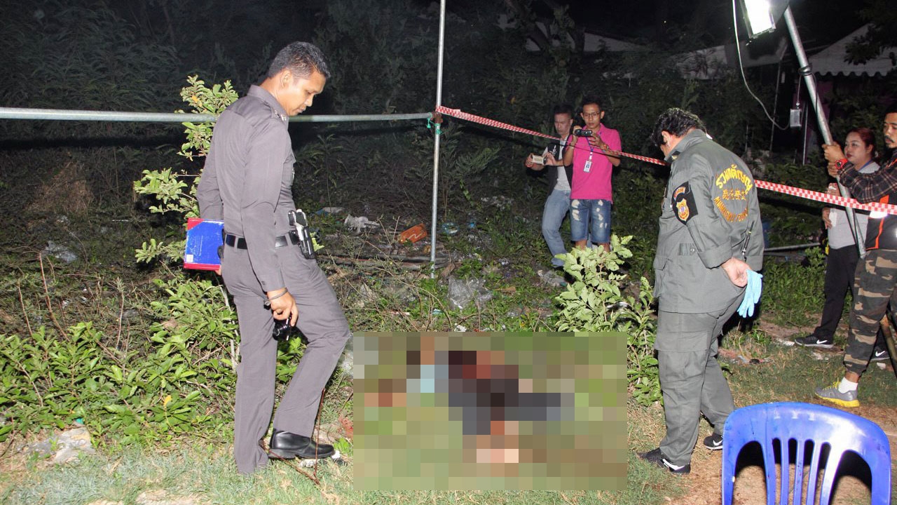 ที่เกิดเหตุประกอบกิจการรับทำและให้เช่าเต็นท์ผ้าใบ ตั้งอยู่ฝั่งตรงข้ามสำนักงานที่ดินบึงกุ่ม ด้านหลังทำเป็นสนามตะกร้อให้พนักงานออกกำลังกาย พบศพนายมุ้ย อายุ 26 ปี ช่างเชื่อมเหล็ก สัญชาติเมียนมา สวมเสื้อยืดแขนยาวสีฟ้า กางเกงยีนส์ขายาวสีดำ รองเท้ายางหุ้มส้นสีขาว นอนหงายนอนจมเลือด มีบาดแผลถูกแทงเข้าที่ลำคอยาว 5 ซม.ใกล้กันพบเก้าอี้พลาสติกสีขาวเปื้อนเลือดล้มระเนระนาด มีเศษขวดเบียร์แตกกระจายเกลื่อน