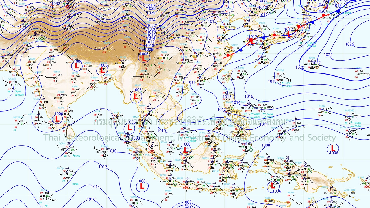 ทะเลมีคลื่นสูง 1-2 เมตร บริเวณที่มีฝนฟ้าคะนองคลื่นสูงมากกว่า 2 เมตร