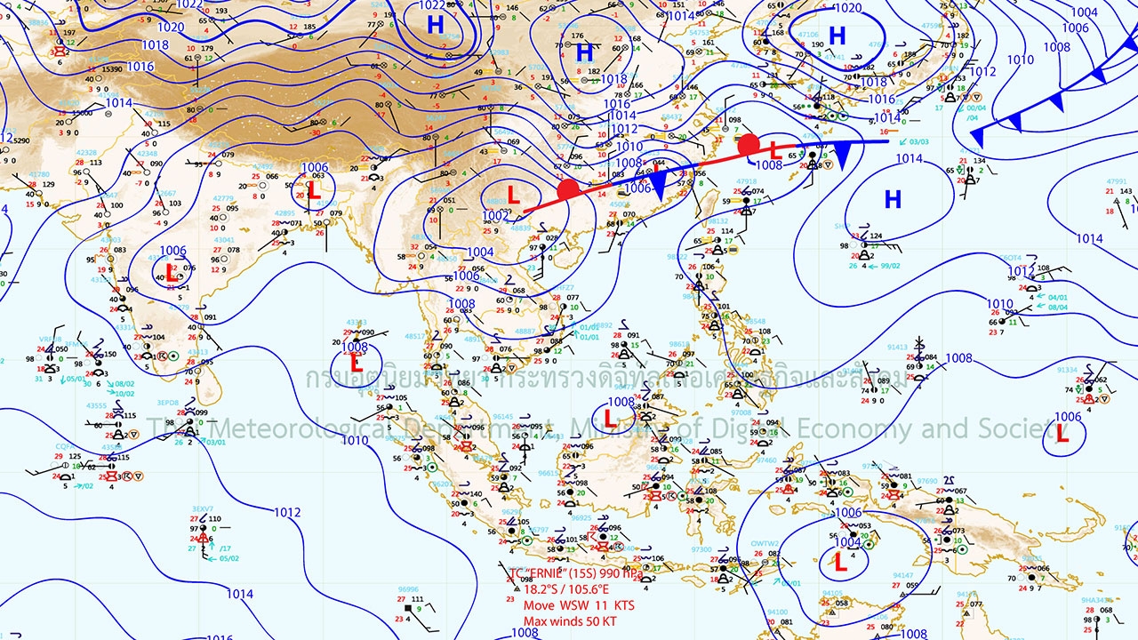 และจากการก่อตัวของกลุ่มเมฆที่ปกคลุมเมืองไทยพบว่า กลุ่มเมฆยังคงปกคลุมส่วนมากบริเวณภาคใต้ ส่วนบริเวณตอนบนของประเทศค่อนข้างบางตา จึงทำให้อุณหภูมิในระยะนี้สูงขึ้น ประกอบกับมีหย่อมความกดอากาศต่ำเนื่องจากความร้อนปกคลุมประเทศไทยตอนบน จึงทำให้ประเทศไทยตอนบน มีอากาศร้อนถึงร้อนจัด ในตอนกลางวัน ซึ่งจากการตรวจสอบอุณหภูมิในวันนี้ จะพบว่าในช่วงกลางวันพื้นที่ที่มีอากาศร้อนถึงร้อนจัดปกคลุมเป็นวงกว้าง ทั้งในพื้นที่ภาคเหนือ ภาคอีสาน และภาคกลาง โดยสูงสุดไปแตะที่ 40 องศาเซลเซียส ส่วนวันพรุ่งนี้คาดว่า อาจจะทะลุไปอยู่ที่ประมาณ 41 องศาเซลเซียสได้ ในบริเวณภาคเหนือตอนล่าง