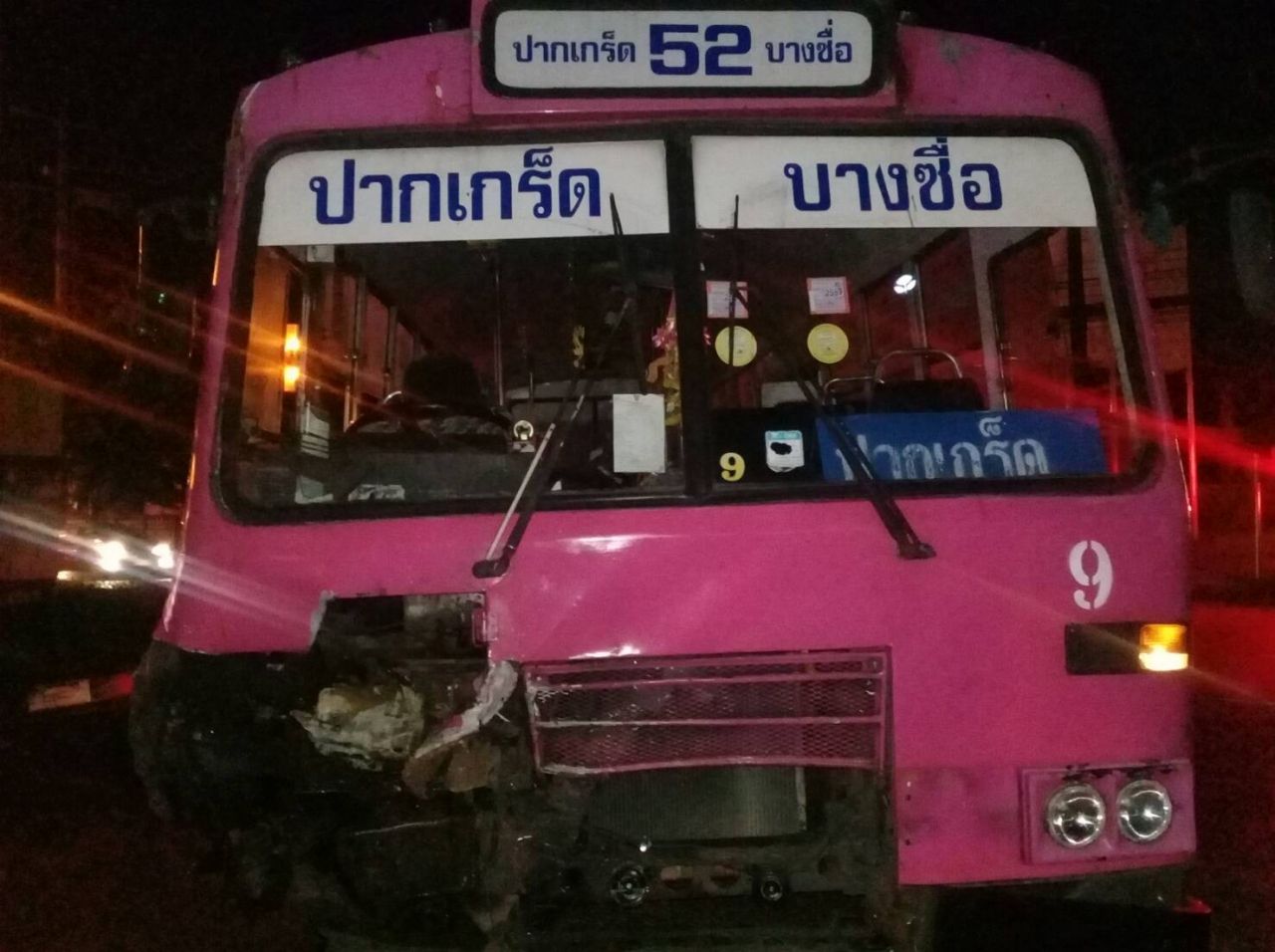 ห่างไปราว 50 เมตร พบรถคู่กรณีเป็นโดยสารประจำทางสาย 52 หมายเลขทะเบียน 12-7239 กทม. วิ่งระหว่าง ปากเกร็ด-บางซื่อ มุมหน้าขวาได้รับความเสียหาย ทราบว่าผู้บาดเจ็บชื่อ พ.ต.ต.สัมพันธ์ แสวง อายุ 33 ปี ตำแหน่ง สว.สส.สน.สุทธิสาร ถูกอัดก๊อบปี้ได้รับบาดเจ็บสาหัส เจ้าหน้าที่กู้ภัยมูลนิธิร่วมกตัญญูต้องช่วยกันงัดซากรถก่อนนำส่ง รพ.ชลประทาน ปากเกร็ด และเสียชีวิตในเวลาต่อมา