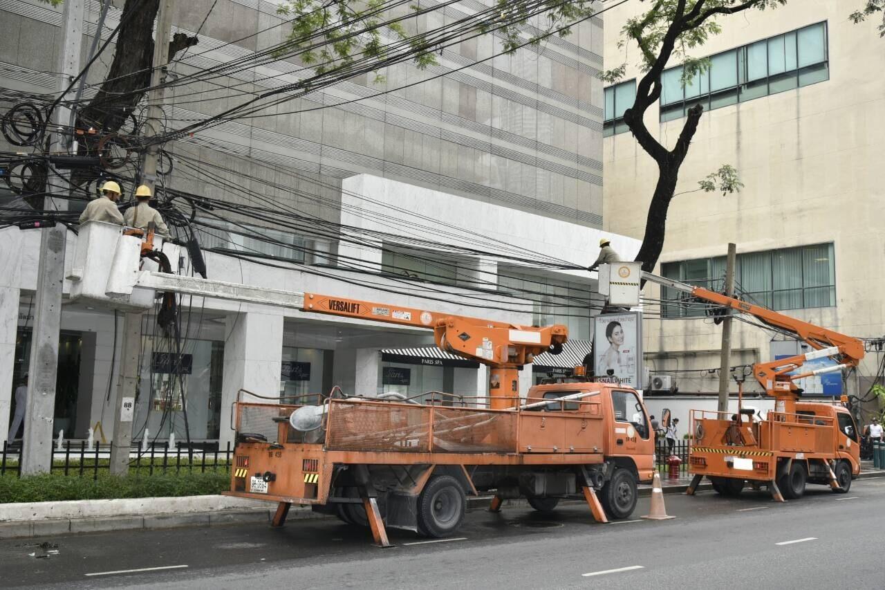 ทั้งนี้ กฟน.ได้ระดมเจ้าหน้าที่เร่งแก้ไขปัญหาโดยประสานหน่วยงานด้านสายสื่อสารและ กรุงเทพมหานคร ร่วมดำเนินการเคลื่อนย้ายต้นไม้ใหญ่ จัดเก็บสายสื่อสารและนำเสาสื่อสาร เสาไฟฟ้า ออกเพื่อคืนพื้นที่จราจร โดยใช้เวลาประมาณ 4 ชั่วโมง จึงสามารถแก้ไขสถานการณ์ได้สำเร็จ ซึ่งหลังจากนี้ กฟน.จะไม่ปักเสาไฟฟ้าในบริเวณดังกล่าว จึงขอความร่วมมือผู้ประกอบการสายสื่อสารทั้งหมดให้ดำเนินการนำลงใต้ดินเพื่อให้เกิดความปลอดภัย และทัศนียภาพที่สวยงาม