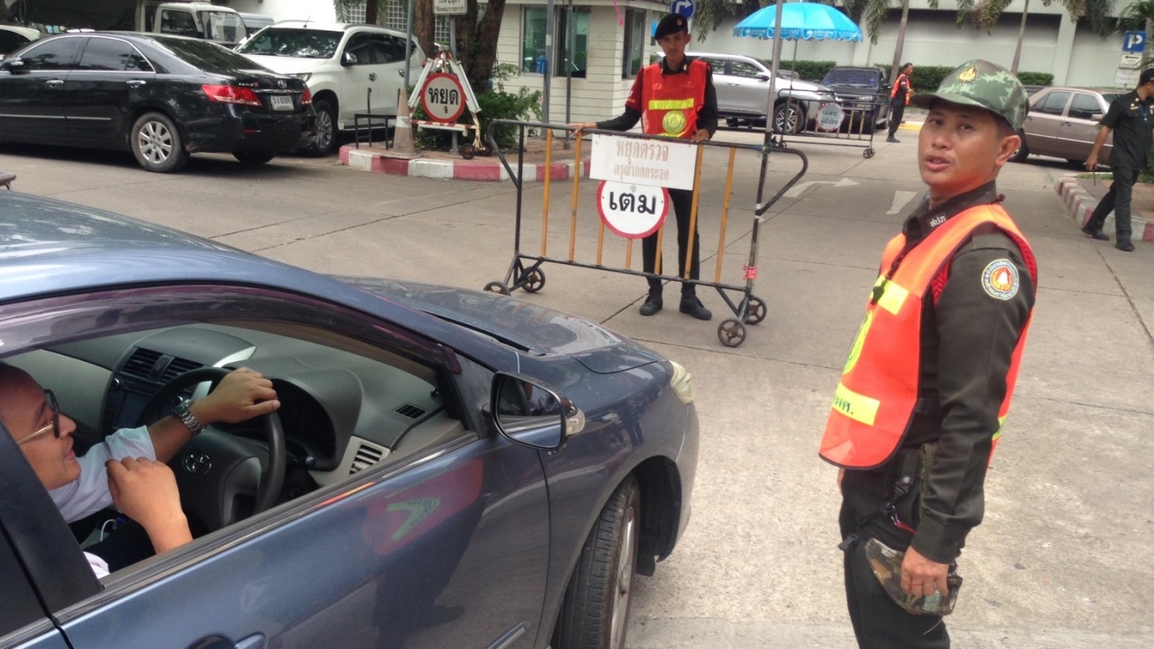 ขณะที่จุดประตูเข้า-ออกศาล เจ้าหน้าที่ รปภ.ได้ตรวจตรารถยนต์ที่เข้ามาทุกคันด้วยการเปิดกระโปรงท้ายรถ พร้อมทั้งให้ลดกระจกเพื่อสอบถามภารกิจที่เข้ามาในบริเวณศาลว่าทำอะไร.