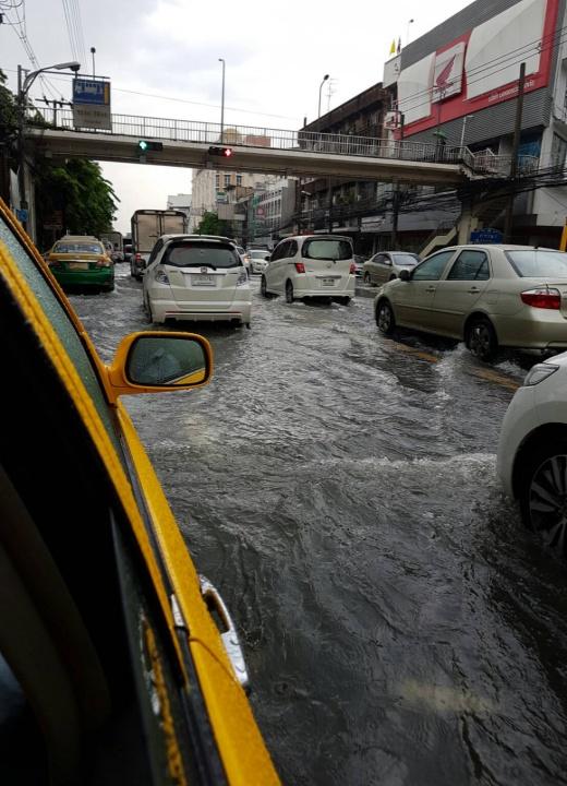 สภาพการจราจรแยกรัชดาภิเษก-ลาดพร้าว ด้านขาออก มีน้ำรอระบายถึงฟุตปาทด้านซ้ายแล้ว รถเริ่มหนาแน่นชะลอตัว ด้าน ลาดพร้าวขาเข้า บริเวณหน้าสถานีรถไฟใต้ดิน MRT ลาดพร้าว มีน้ำขังที่ช่องทางด้านซ้ายทั้งขาเข้าและขาออก เช่นเดียวกับถนนรัชดาภิเษก จากหน้าโรงเรียนปัญจทรัพย์ มุ่งหน้า แยกรัชดาภิเษก-ลาดพร้าว มีน้ำท่วมช่องทางด้านซ้าย ผู้ขับขี่ควรใช้ความระมัดระวัง และใช้ความเร็วไม่มาก