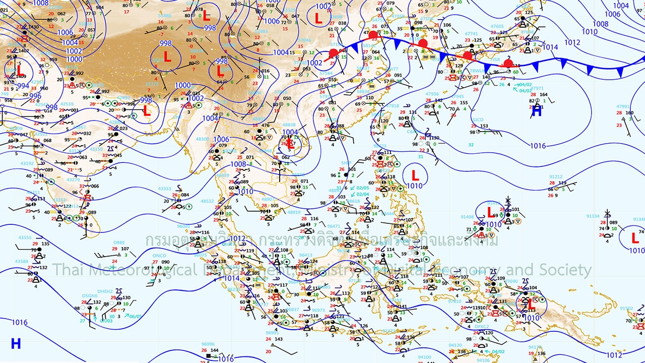 พยากรณ์อากาศสำหรับประเทศไทยตั้งแต่เวลา 06:00 วันนี้ ถึง 06:00 วันพรุ่งนี้.