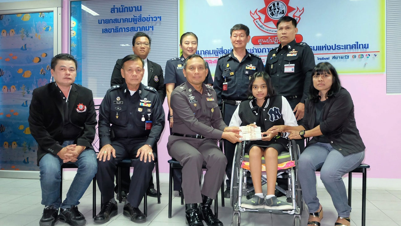 เมื่อเวลา 13.00 น. วันที่ 6 ก.ค.60 ที่ห้องสมาคมผู้สื่อข่าวและช่างภาพอาชญากรรมแห่งประเทศไทย ถนนศรีอยุธยา แขวงทุ่งพญาไท เขตราชเทวี กทม. พล.ต.อ.วิระชัย ทรงเมตตา ที่ปรึกษา สบ.10 (ชื่อเดิม พล.ต.อ.สุวิระ) และเป็นประธานที่ปรึกษาสมาคมตำรวจโรงงาน นายเดชา เดชนที นายกสมาคมตำรวจโรงงาน และนายไพโรจน์ เทศนิยม นายกสมาคมผู้สื่อข่าวและอาชญากรรมแห่งประเทศไทย ได้ร่วมกันมอบเงินสด 2 แสนบาท ให้กับ ด.ญ.ภัทรดา แก้วผ่อง หรือ น้องบีม อายุ 14 ปี นักเรียนชั้น ม.2 โรงเรียนศรีสังวาลย์ และน.ส.พรทิพย์ จันทรัตน์ อายุ 44 ปี หลังถูกนายพิสิษฐ์ สัมมาเลิศ ทนายความอาสา ที่รับว่าความคดีอุบัติเหตุรถยนต์ที่น้องบีมกับครอบครัวโดยสารมาชนกับรถพ่วง 18 ล้อ ในพื้นที่ อ.ไชยา จ.สุราษฎร์ธานี เมื่อปี 2549 เป็นเหตุให้พ่อน้องบีมเสียชีวิต ส่วนน้องบีมต้องถูกตัดขากลายเป็นคนพิการ ตั้งแต่อายุ 2 ขวบ ซึ่งทางบริษัทเจ้าของรถพ่วงคู่กรณี ได้ชดใช้ค่าเสียหายให้ 5 ล้านบาท แต่นายพิสิษฐ์ โกงเงินไปจนมีการแจ้งความไว้ที่ สน.บางยี่ขัน