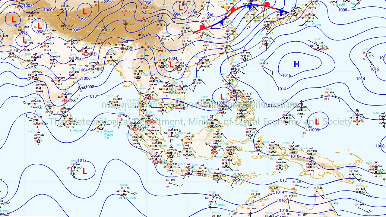 พยากรณ์อากาศสำหรับประเทศไทยตั้งแต่เวลา 06.00 วันนี้ ถึง 06.00 วันพรุ่งนี้