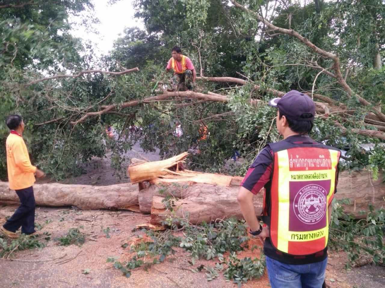 เวลา 03.40 น. วันที่ 12 ก.ค.60 ร.ต.อ.สุรัตน์ บูราณ พนักงานสอบสวน สภ.หัวตะพาน จ.อำนาจเจริญ รับแจ้งเหตุ มีต้นไม้ขนาดใหญ่ล้มทับเส้นทางสายหลัก หมายเลข 2210 ขมิ้น-น้ำปลีก และมีอุบัติเหตุรถกระบะชนเข้ากับต้นไม้ที่ล้มอยู่ในบริเวณดังกล่าว จึงประสาน แขวงทางหลวงอำนาจเจริญ และกู้ชีพ อบต.คำพระ ร่วมตรวจสอบเหตุ