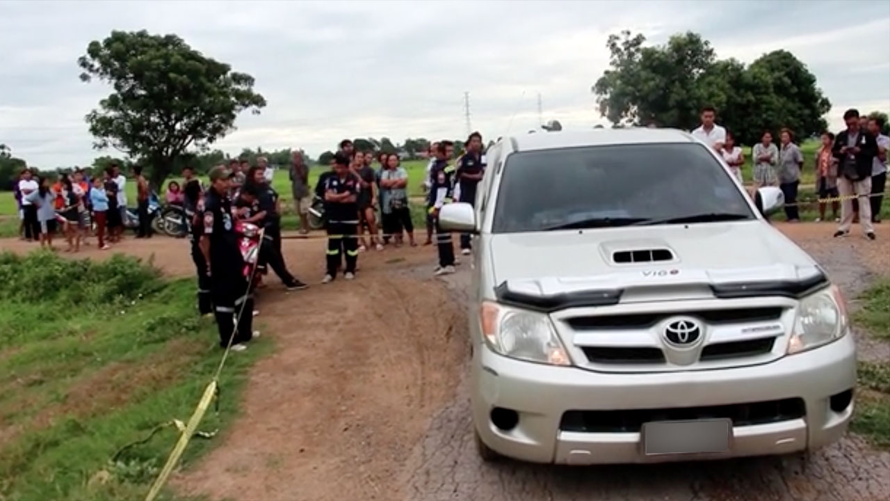 เมื่อเวลา 07.30 น. วันที่ 16 ก.ค.60 ร.ต.อ.นนทกร ศาลาคราม สว.สอบสวน สภ. อินทร์บุรี จ.สิงห์บุรี รับแจ้งเหตุมีคนถูกยิงเสียชีวิตบริเวณกลางทุ่งนาบ้านไผ่ขวาง หมู่ที่ 10 ต.ประศุก อ.อินทร์บุรี จ.สิงห์บุรี จึงรุดไปตรวจสอบยังที่เกิดเหตุพร้อมมูลนิธิป่อเต็กตึ๊งสิงห์บุรี และแพทย์เวรโรงพยาบาลอินทร์บุรี ในที่เกิดเหตุพบรกกระบะโตโยต้า วีโก้สีบรอนซ์-เทา หมายเลขทะเบียน บจ 7060 สิงห์บุรี จอดติดเครื่องอยู่ ภายในรถพบศพนายสุนทร บุญมีสง่า อายุ 53 ปี อยู่บ้านเลขที่ 60/1 ม.3 ต.ห้วยชัน อ.อินทร์บุรี จ.สิงห์บุรี ถูกยิงด้วยอาวุธปืนซีแซด ขนาด 9 มม. เข้าบริเวณกกหูขวา 1 นัด กระสุนทะลุกกหูซ้าย ในมือถืออาวุธปืนขนาดเดียวกัน ด้านข้างเบาะคนขับพบศพ น.ส.ศิริธร บุญมีสง่า อายุ 27 ปี ภรรยาอยู่บ้านเลขที่เดียวกัน ถูกยิงเข้าที่บริเวณกกหูด้านขวาเช่นเดียวกัน กระสุนทะลุกกหูซ้ายเช่นกัน นอนเสียชีวิตข้างนายสุนทร อยู่ในสภาพปรับเบาะเอนนอนเล็กน้อย ตรวจสอบปืนมีลูกกระสุน 8 ลูกอยู่ในแม็กกาซีน และอีก 1 ลูกอยู่ในลำเพลิง ภายในรถพบปลอกกระสุน 2 ปลอก เจ้าหน้าที่จึงเก็บไว้เป็นหลักฐาน