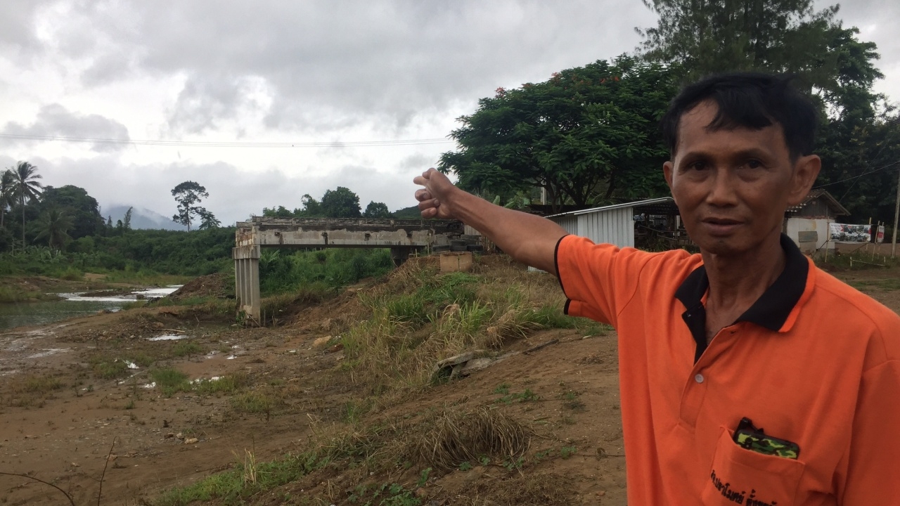 วันที่ 19 ก.ค. 60 ผู้สื่อข่าวเดินทางไปยัง สะพานข้ามคลองทอง ด้านหลังลานวัฒนธรรมร่อนทอง บ้านป่าร่อน ม.6 ต.ร่อนทอง อ.บางสะพาน จ.ประจวบคีรีขันธ์ หลังจากชาวบ้านได้ร้องเรียนมายังสื่อมวลชน ว่า สะพาน คสล. ความยาวกว่า 60 เมตร ที่ใช้สัญจรมานานนับสิบปี ถูกกระแสน้ำป่าพัดสะพานพังเสียหาย ไม่สามารถใช้การได้ตั้งแต่ช่วงน้ำท่วมใหญ่ อ.บางสะพาน เมื่อช่วงวันที่ 9-10 มกราคม 2560 หรือกว่า 6 เดือนที่ผ่านมา