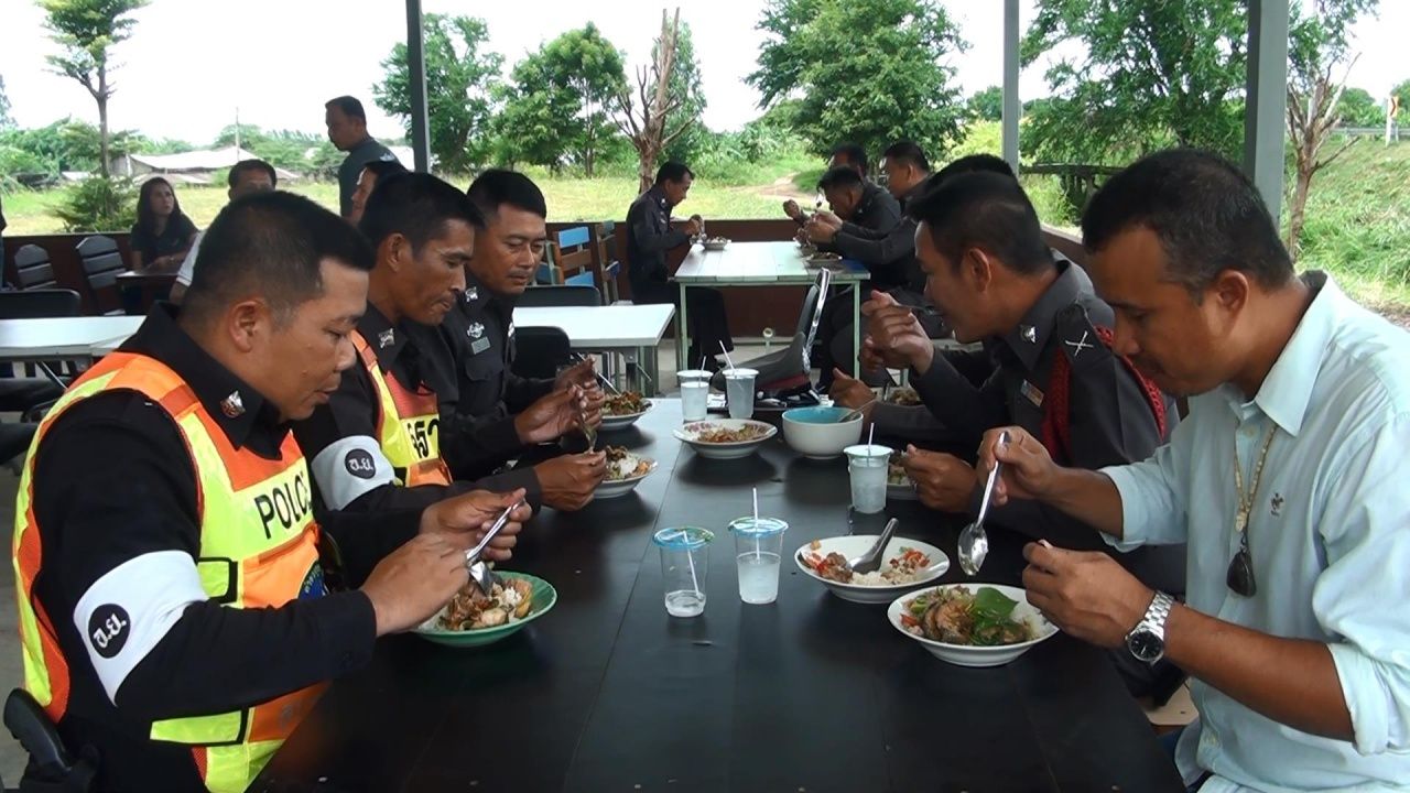 "นอกจากนี้แล้ว ตำรวจในสังกัดยังได้มีโอกาสแลกเปลี่ยนข้อมูลข่าวสาร พบปะพูดคุย ปรึกษาหารือในเรื่องต่างๆ เสริมสร้างความรักและสามัคคีในหมู่คณะ เป็นการสร้างขวัญและกำลังใจในการปฏิบัติงาน รวมถึงลดค่าใช้จ่ายสำหรับอาหารมื้อกลางวัน เป็นสวัสดิการให้กับข้าราชการตำรวจและครอบครัว" พ.ต.อ.เอนก กล่าว พลางตักอาหารให้ลูกน้องได้รับประทาน.