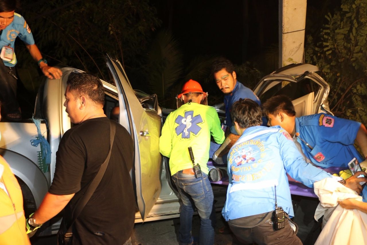 ที่เกิดเหตุ พบรถกระบะ โตโยต้าสี่ประตู สีบรอนซ์เงิน ทะเบียน ศธ 5571 กรุงเทพมหานคร ชนอัดก๊อบปี้ติดอยู่กับเสาไฟฟ้าริมถนน สภาพรถด้านหน้าฝั่งซ้ายพังยับเยิน เสาไฟหักทับหลังคารถและมีผู้เสียชีวิตติดอยู่ภายในรถ เจ้าหน้าที่การไฟฟ้า ต้องทำการตัดกระแสไฟฟ้า และนำรถเครนมายกเสาไฟฟ้าที่ล้มทับรถอยู่ เพื่อให้หน่วยกู้ภัยนำรถมาลากดึงรถที่ชนติดอยู่โคนเสาไฟฟ้าออก
