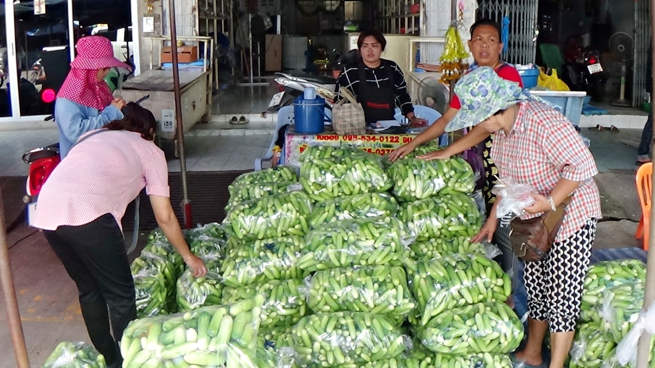 นางมณฑา ถาวร อายุ 42 ปี ตัวแทนแม่ค้า เปิดเผยว่า ในช่วงนี้แตงกวาออกสู่ตลาดจำนวนมากทำให้ล้นตลาด ราคาเริ่มตกลงเหลือเพียงกิโลกรัมละ 7-8 บาท เท่านั้น บางวันรับซื้อมาจากสวนเป็นจำนวนมาก แต่ต้องตกค้างอยู่ที่ร้านเป็นจำนวนมากด้วยเช่นกัน