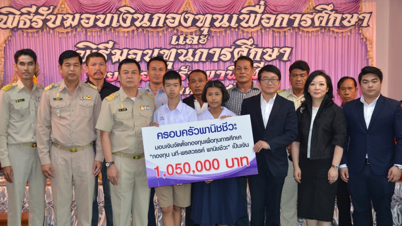 ครอบครัวคหบดีใจบุญในพื้นที่ จ.สุพรรณบุรี มอบเงิน 1 ล้าน 5 หมื่นบาทเป็นกองทุนประจำโรงเรียน ส่งเสริมเด็กเก่งแต่ยากจนให้เรียนต่อจนจบ ม.6