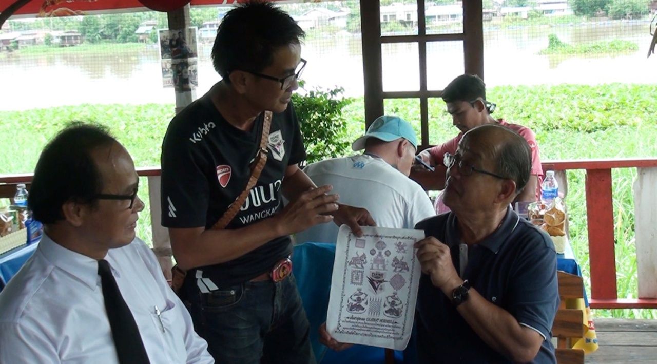 ต่อมา ผู้สื่อข่าวได้เดินทางไปสอบถามเจ้าของความคิดที่ออกแบบและจัดทำผ้ายันต์ ซึ่งก็คือนายวิเชียร สมศรี เจ้าของร้านก๊ะเตี๋ยว บ้าบอล พบว่าในร้านประดับประดาด้วยเสื้อของทีมชัยนาท ฮอร์นบิล เกือบทุกรุ่นที่ออกมา พร้อมลายเซ็นนักเตะ สร้างสีสันและความประหลาดใจแก่ผู้พบเห็น ขณะที่บริเวณหน้าร้านมีผ้ายันต์รุ่นแรกที่จัดทำขึ้น ใส่กรอบบูชาด้วยความศรัทธา
