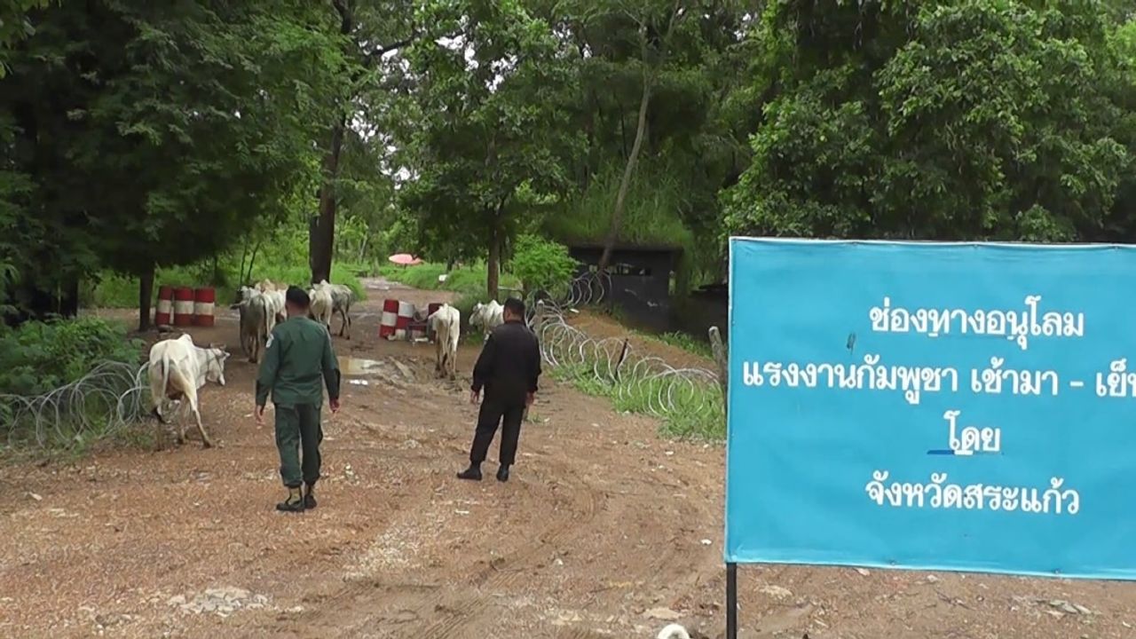 วันที่ 27 ก.ค. 60 ที่บริเวณจุดผ่อนผันแรงงาน บ้านป่าไร่ ต.ป่าไร่ อ.อรัญประเทศ จ.สระแก้ว พ.ต.อ.เสกสรร วัฒนพงษ์ ผกก.สภ.คลองลึก จ.สระแก้ว ร่วมกับ พ.ต.อ.เบญจพล รอดสวาสดิ์ ผกก.ตม.จว.สระแก้ว และ พ.อ.นิโรธ ทองม่วง ผบ.ฉก.กรม.ทพ.12 นำกำลังช่วยกันไล่ต้อนวัวผสมอเมริกันบรามันสีขาว จำนวน 12 ตัว จากกองร้อยทหารพรานที่ 1205 บ้านป่าไร่ ต.ป่าไร่ อ.อรัญประเทศ จ.สระแก้ว มาเพื่อส่งคืนให้กับกัมพูชา โดยมีเจ้าหน้าที่กัมพูชา กองพัน ตชด.ที่ 911 จำนวน 4 นายนำโดย ร.อ.อก สำอาน รอง ผบ.ร้อยที่ 3 พัน ตชด.911 เดินทางมารับมอบถึงจุดผ่อนผันแรงงาน หน้ากองร้อยทหารพรานที่ 1205 บ้านป่าไร่ โดยฝ่ายกัมพูชาได้ขอบคุณฝ่ายไทยที่ให้ความช่วยเหลือในการติดตามวัวของชาวกัมพูชาจำนวน 12 ตัว ที่พลัดหลงเดินรุกล้ำเข้ามาในประเทศไทย