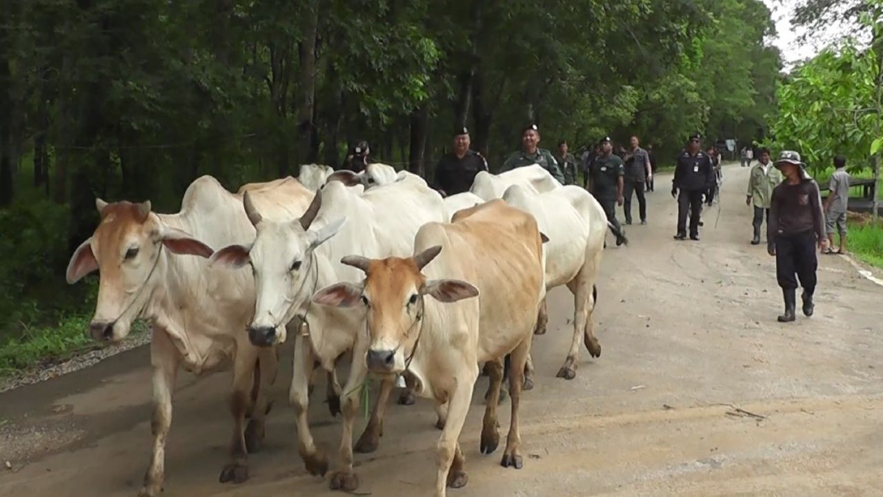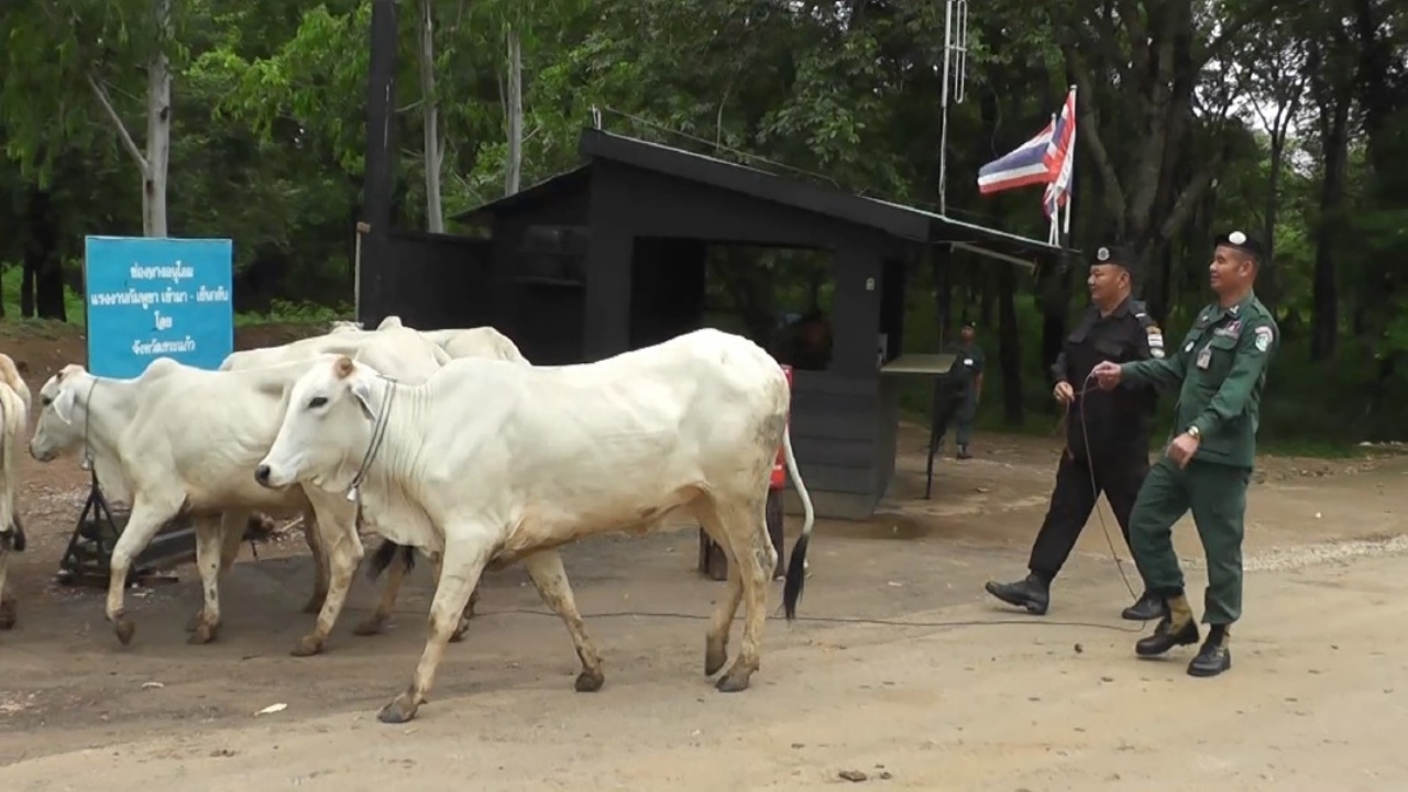 ทหารพรานร่วมกับ ตม. ตำรวจคลองลึก ไล่ต้อนวัวพันธุ์ผสมอเมริกันบรามัน 12 ตัว ส่งคืนกัมพูชา หลังเดินหากินหลงข้ามแดนเข้ามาหากิน ตรวจสอบแล้วเป็นวัวเขมรไม่ใช่วัวไทย จึงนำส่งคืน ท่ามกลางบรรยากาศชื่นมื่นทั้งสองฝ่าย...
