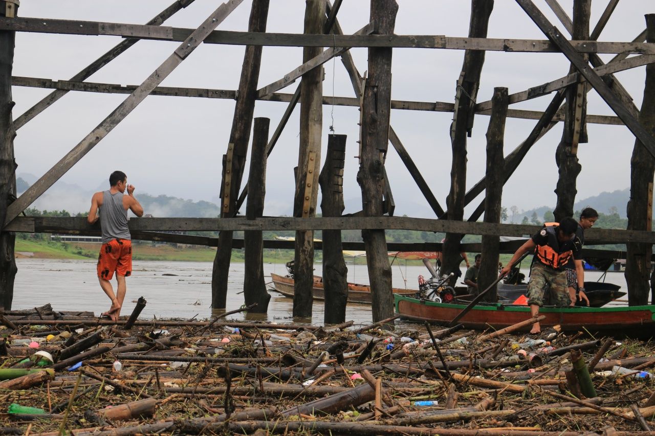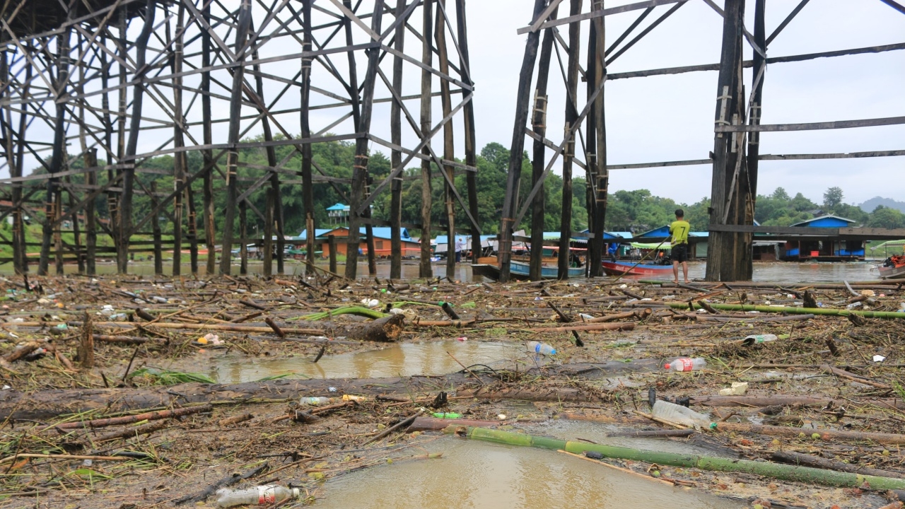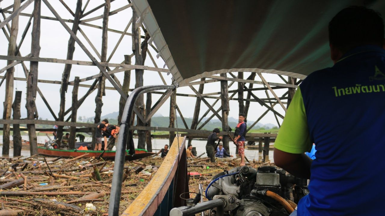 ชายแดนตะวันตก อ.สังขละบุรี ฝนตกติดต่อกัน 10 วัน น้ำป่าทะลักลงแม่น้ำซองกาเรียสีขุ่นข้น ชาวบ้านกลัวสะพานไม้มอญ ‘อุตตมานุสรณ์’ พัง ระดมเก็บขยะ เศษไม้ที่ไหลลอยมาติดตอม่อสะพาน เผยครบ 4 ปี สะพานพังพอดี....