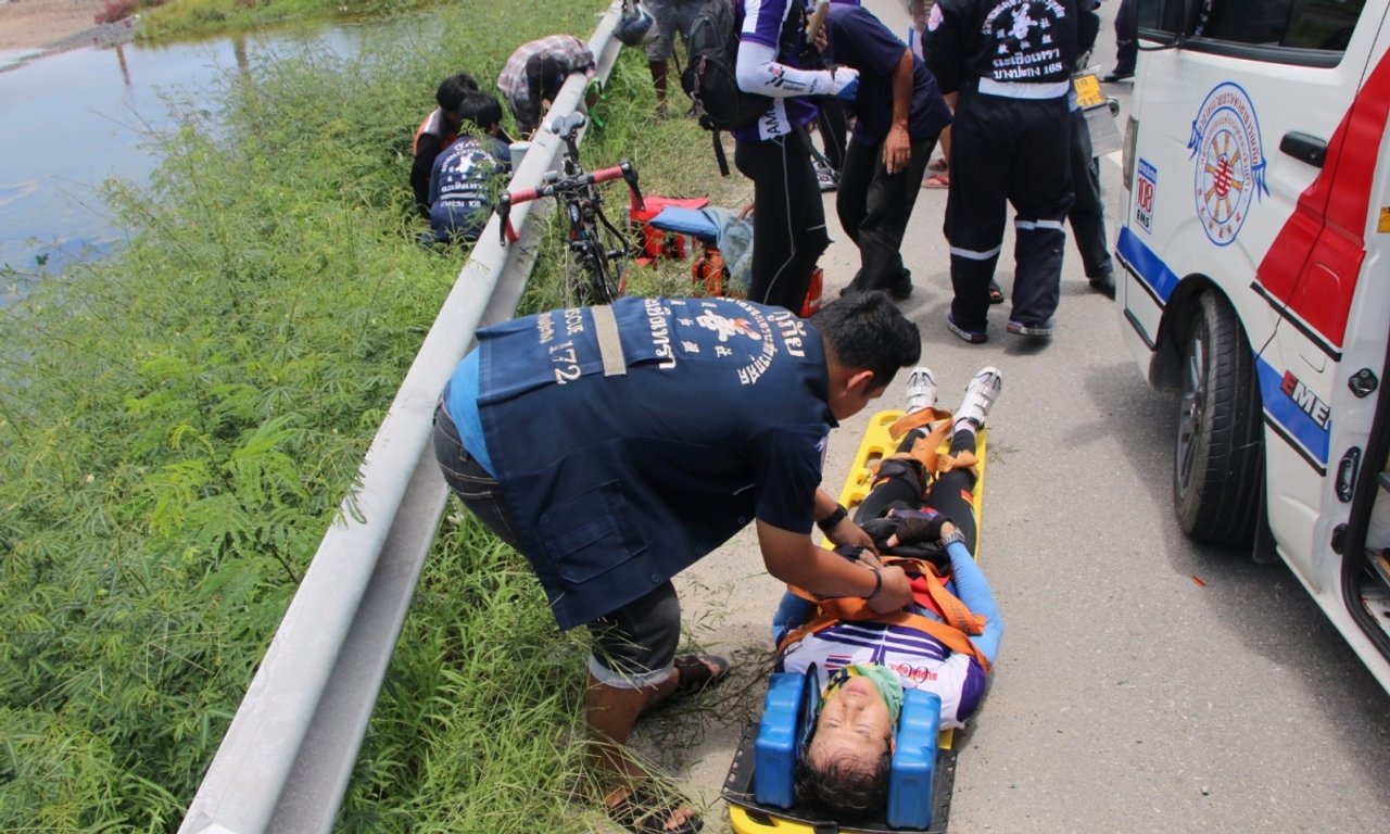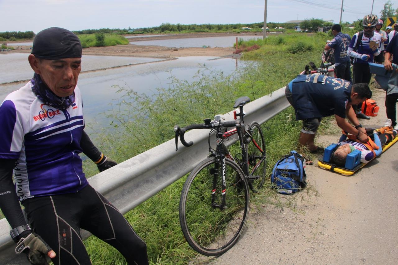 เมื่อเวลา 12.30 น. วันที่ 28 ก.ค.60 เจ้าหน้าที่ตำรวจ สภ.บางปะกง จ.ฉะเชิงเทรา พร้อมหน่วยกู้ภัยฉะเชิงเทรา ตรวจสอบเหตุรถชนกัน ช่วงโค้งรางตาสอน ถ.สุขุมวิทสายเก่า มุ่งหน้าคลองด่าน ม.15 ต.บางปะกง อ.บางปะกง พบผู้ได้รับบาดเจ็บเป็นนักปั่นจักรยาน กลุ่มบัดดี้ไบท์นอนเกลื่อนข้างทางจำนวน 3 ราย ทราบชื่อ นายธเนศพล คำดี อายุ 44 ปี, นายสมโภชน์ ศรีจันทรา อายุ 49 ปี และ นายสมพงษ์ ตั้งสุวรรณศรี อายุ 55 ปี กู้ภัยปฐมพยาบาลแล้วรีบนำตัวส่งโรงพยาบาลจุฬารัตน์ 11