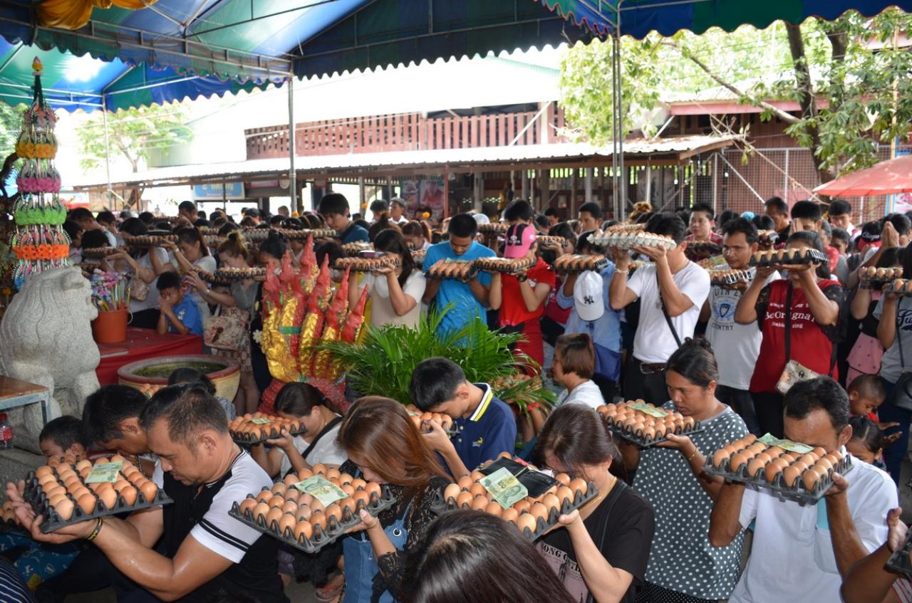 ในส่วนของวัดต่างๆ ก็คึกคักเช่นกันประชาชนเดินทางมาทำบุญตักบาตร ปล่อยนกปล่อยปลา กราบไหว้ขอพรสิ่งศักดิ์สิทธิ์ ที่คึกคักเป็นพิเศษผู้คนหลั่งไหลกันมาจนแน่นวัด คือ วัดสว่างอารมณ์ ต.ขุนแก้ว อ.นครชัยศรี ที่อัญเชิญพญานาคราช หลวงปู่ศรีสุทโธ จากป่าคำชะโนด มาประดิษฐานให้สาธุชนมากราบไหว้ขอพร ซึ่งได้ทำพิธีเบิกเนตรไปเมื่อวันที่ 23 ก.ค.ที่ผ่านมา ถือเป็นแห่งที่สาม ผู้คนต่างเดินทางมากราบไหว้ นำไข่ไก่สดคนละ 1 แผง มาถวายแก้บนกันจนแน่นรวมแล้วกว่า 5,000 แผง