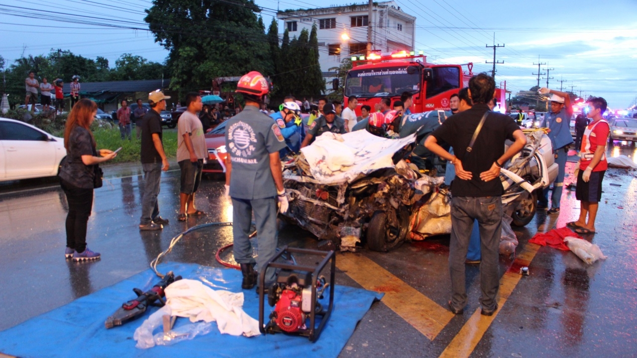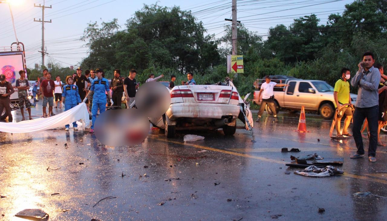 จากการสอบถามนายจาตุรงค์ ดีเลิศกุลชัย อายุ 25 ปี ที่ขับรถปิกอัพตามหลังมา เห็นรถหกล้อนั้นเกิดเสียหลักหมุนไปกลางถนนเนื่องจากขณะนั้นมีฝนตกลงมาอย่างหนัก เป็นจังหวะเดียวกับที่มีรถเก๋งสนทางมาพุ่งชนอย่างจัง และตนเองก็พุ่งชนท้ายรถเก๋งได้รับความเสียหายด้วย เบื้องต้นเจ้าหน้าที่ได้ติดตามตัวคนขับรถบรรทุก 6 ล้อมาทำการสอบสวนเพื่อดำเนินคดีต่อไป
