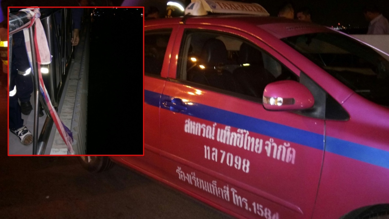 ที่เกิดเหตุ บริเวณกลางสะพานภูมิพล1 ขึ้นจากถนนพระราม 3 มุ่งหน้าลงถนนสุขสวัสดิ์พบรถแท็กซี่โตโยต้า สีชมพู ทะเบียน ทล 7098 กทม. ของสหกรณ์ แท็กซี่ไทย จำกัด ตรวจสอบรถคันดังกล่าวยังติดเครื่องเปิดแอร์ และไฟหน้าไว้ แต่ตรวจหาคนขับรถคันดังกล่าวไม่พบ