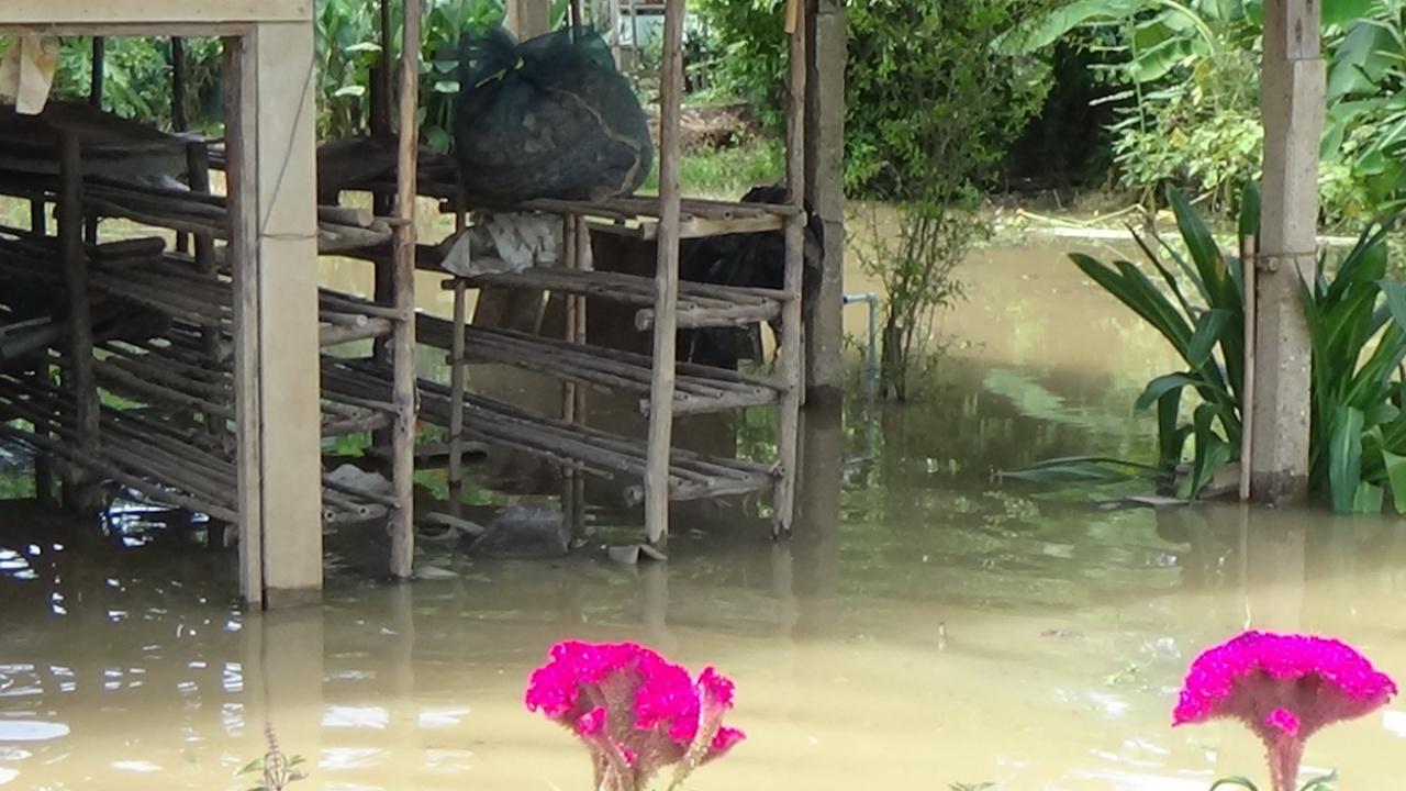 ด้านนางสมบัติ แสงศรี อายุ 65 ปี ชาวบ้าน ม.4 ต.โผงเผง ได้เร่งขนของขึ้นที่สูงและเร่งยาเรือ เพื่อเตรียมไว้ใช้งาน หลังน้ำจากคลองโผงเผงสาขาแม่น้ำเจ้าพระยา อ่อล้นตลิ่งไหลเข้าท่วมไต้ถุนบ้านสูงกว่า 30 ซม.