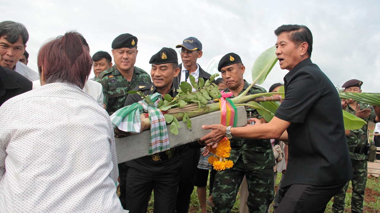 เมื่อเวลา 09.09 น. วันที่ 3 ส.ค. นายรณชัย จิตรวิเศษ รอง ผวจ.กาญจนบุรี รรท.ผวจ.กาญจนบุรี พ.อ.ปิยะพงษ์ กลิ่นพันธุ์ รองผู้บัญชาการกองพลทหารราบที่ 9 พร้อมผู้เกี่ยวข้อง ร่วมกันเป็นประธาน พิธียกเสาเอกโครงการบ้านมั่นคงชนบทในเขตปฏิรูป ที่ดิน ต.สิงห์ 6 หลัง ที่บริเวณแปลงที่ดิน เลขที่ 14 ต.สิงห์ อ.ไทรโยค จ.กาญจนบุรี