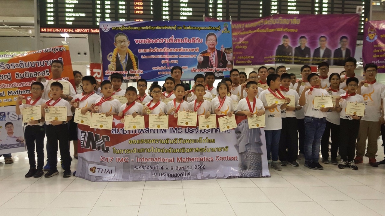 นายภูมิเทพ คลังอุไร เลขาธิการ IMC Union เปิดเผย ภายหลังเดินทางมาถึงสนามบินสุวรรณภูมิ ว่า ระหว่างวันที่ 4 – 8 สิงหาคม 2560 ได้นำตัวแทนเด็กไทย จำนวน 34 คน เข้าร่วมการแข่งขันคณิตศาสตร์นานาชาติ 2017 IMC – International Mathematics Contest ณ ประเทศสิงคโปร์ ผลปรากฏว่า เด็กไทยประสบความสำเร็จในการทำชื่อเสียงให้กับประเทศไทยอีกครั้ง สามารถทำผลงานได้ครบทั้ง 34 คน เป็นเหรียญทอง 8 รางวัล เหรียญเงิน 7 รางวัล และทองแดง 19 รางวัล พร้อมรางวัล Champion เกรด 8 อีก 1 รางวัล เป็นผลงานของ เด็กชายวรภาส มีจิตรไพศาลโรงเรียนกรุงเทพคริสเตียนวิทยาลัย จากจำนวนผู้เข้าร่วมการแข่งขันมากกว่า 1,000 คน ของประเทศสมาชิกภาพ 13 ประเทศ