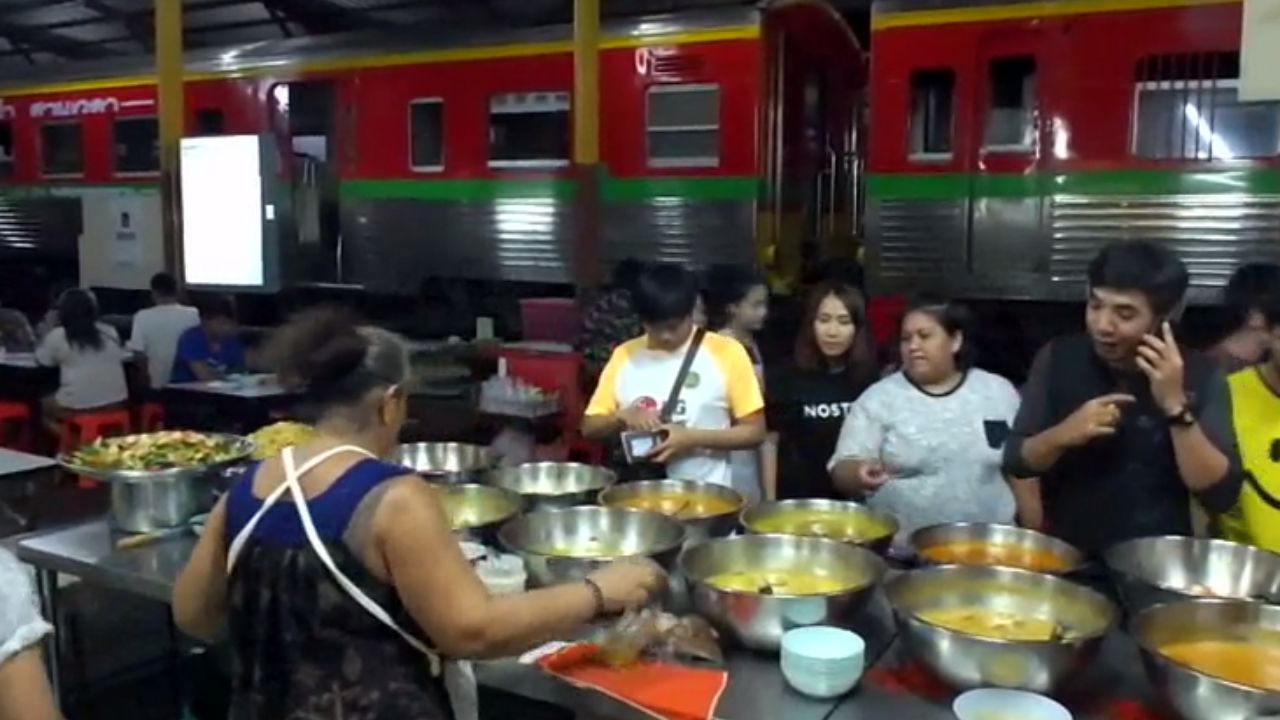 "อาหารมีเลือกหลากหลายเมนู ประมาณ 25 อย่าง ที่นักชิมชอบมาก สั่งเสมอก็แกงปลาดุก แกงกบ แกงปลาลูกชิ้น ซึ่งรสชาติจัดจ้านมาก กินแล้วตาสว่างขึ้นมาทันที แถมบรรยากาศก็ดี นั่งกินติดกับรางรถไฟ สถานีรถไฟ นั่งรับประทานได้ตามสบาย มีโต๊ะ มีรางรถไฟให้ลองนั่ง อาหารก็ไม่แพง กับข้าวอย่างละ 20-25 บาท ข้าวเปล่าจานละ 5 บาทเอง คนที่มาทาน ทานเสร็จก็ต้องสั่งใส่ถุงกลับบ้านไปฝากคนที่บ้านด้วยเกือบทุกโต๊ะ เป็นอาหารเช้าต่อไป และยังมีลูกค้าประจำสั่งใส่ถุงรับไปขายต่ออีกวันละ 100 กว่าถุง"