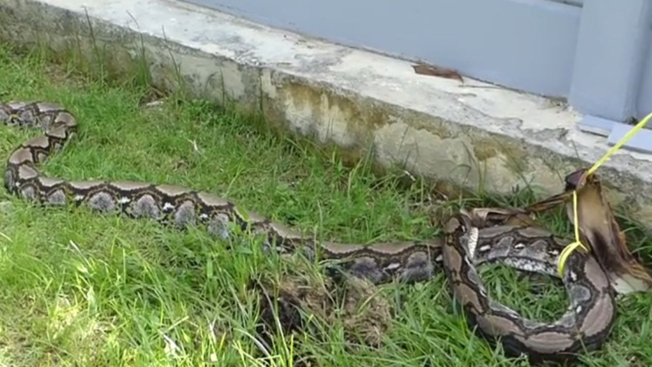 สอบถาม นางสาวจำนรรจ์ สุภะ คนทำสวน กล่าวว่า ขณะที่ตนเองกำลังจะทำความสะอาดในสวนหย่อม เห็นว่ามีท่อนไม้ขวางอยู่ที่สนามหญ้าจึงจะเข้าไปเก็บ แต่เมื่อเข้าไปใกล้ๆ พบว่าไม่ใช่ท่อนไม้ แต่เป็นงูเหลือมขนาดใหญ่มาก จึงได้เรียกให้คนสวนคนอื่นมาช่วยจับไว้พร้อมแจ้งกู้ภัยนำไปปล่อยสู่แหล่งธรรมชาติ ซึ่งก่อนหน้านี้ชาวบ้านใกล้เคียงบอกว่า ที่ผ่านมา แมวในหมู่บ้านหายไปบ่อยครั้ง แต่ก็ไม่ทราบว่าหายไปไหน เมื่อจับงูเหลือมตัวนี้ไปปล่อยได้ ชาวบ้านก็รู้สึกปลอดภัยขึ้น.