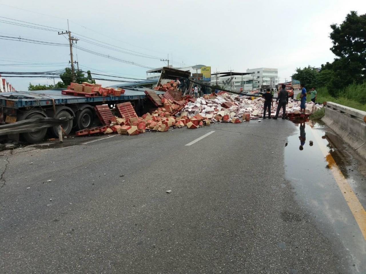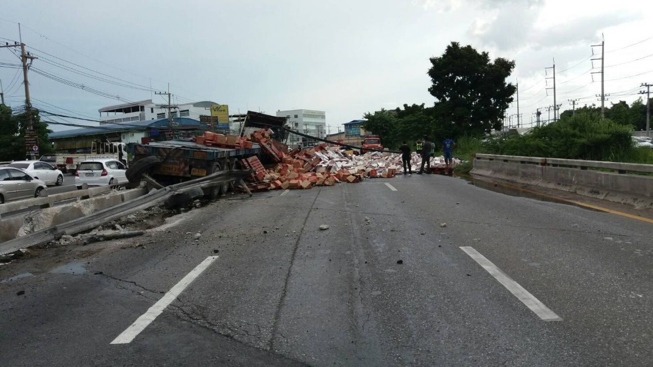 เมื่อเวลา 16.04 น. วันที่ 14 ส.ค. 2560 ผู้สื่อข่าวรายงานว่า เกิดอุบัติเหตุรถเทรลเลอร์ 18 ล้อ บรรทุกลังเบียร์พลิกคว่ำ บริเวณถนนพระรามสองช่องทางด่วน ฝั่งขาออกจากกรุงเทพมหานคร ใกล้เคียงหมู่บ้านอมรชัย 5 ต.บางน้ำจืด อ.เมือง จ.สมุทรสาคร ช่วงหลัก (กม.17+100) ที่มาจากทางแสมดำ จะมุ่งหน้าไปตลาดมหาชัยเมืองใหม่ โดยลังเบียร์ตกลงมาเกลื่อนกลางถนน กีดขวางการจราจรทุกช่องทางขณะนี้ การจราจรติดขัดอย่างหนัก ท้ายแถวติดเลยมหาชัยเมืองใหม่ แนะนำให้ผู้ที่จำเป็นต้องเดินทางลงใต้ หลีกเลี่ยงไปใช้เส้นทางอื่น เพราะเจ้าหน้าที่ตำรวจ สภ.เมืองสมุทรสาคร ต้องปิดการจราจร เพื่อเคลียร์เศษขวดแก้วที่ตกแตก