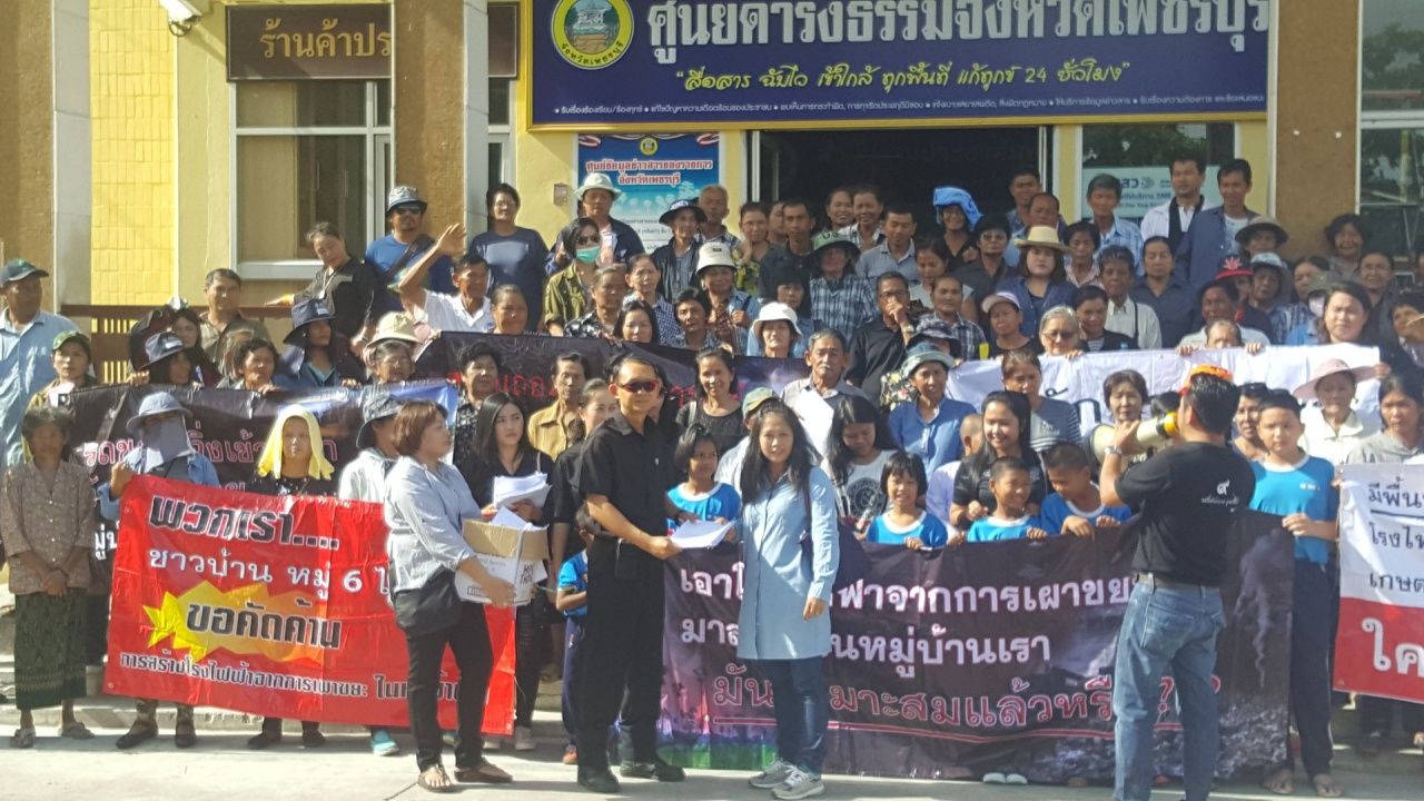 เมื่อเวลา 09.30 น.วันที่ 16 ส.ค.ที่ศูนย์ดำรงธรรม ศาลากลาง จ.เพชรบุรี มีชาวบ้านจากตำบลไร่มะขาม ตำบลท่าเสน และตำบลไร่ถิ่นน้อย อ.บ้านลาด จ.เพชรบุรี เกือบ 500 คน ได้มารวมตัวกันเพื่อยื่นหนังสือคัดค้านคำขอใบรับอนุญาตประกอบกิจการโรงงานจำพวกที่ 3
