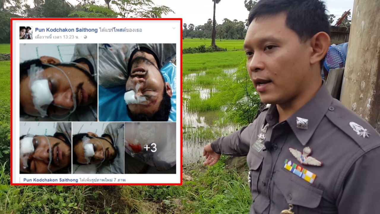 เหตุเกิดเวลา 18.00 น. ..ณ ป้อมบ้านลาด...แพทย์วินิจฉัยกระดูกตาแตกช้ำ อาเจียนเป็นเลือดตลอดเวลา...ปันขอความเป็นธรรมด้วยค่ะ....ช่วยแชร์กันด้วยน่ะค่ะ มีตำรวจแบบนี้อยู่ ประชาชนจะอยู่อย่างไร..(ส่วนตำรวจท่านที่ดีก็มีน่ะค่ะที่บ้านลาด) *ปันแค่ขอประณามตำรวจที่มันทำสามีปันและไม่ยอมออกมารับผิดชอบเท่านั้นเอง”