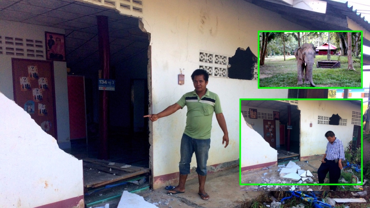 เมื่อวันที่ 13 ก.ย.60 ผู้สื่อข่าวรับแจ้งจาก นางรัชดาวรรณ พึ่งประสบพร อายุ 26 ปี อาชีพขายน้ำปั่น อยู่บ้านเลขที่ 134 หมู่ 1 บ้านเฉลิมเกียรติพัฒนา ต.ห้วยสัตว์ใหญ่ อ.หัวหิน จ.ประจวบคีรีขันธ์ ว่าช่วงกลางดึกที่ผ่านมา ขณะตนและสามีนอนหลับพักผ่อนอยู่ในบ้าน ต้องตกใจตื่น เมื่อได้ยินเสียงดังสนั่นหวั่นไหว จนต้องออกจากห้องมาดู ก็พบช้างป่าละอูขนาดใหญ่ กำลังพังกำแพงปูนหน้าบ้านเข้ามา เมื่อเห็นช้าง ก็ทำอะไรไม่ถูก ได้แต่ตะโกนบอกสามีให้ช่วยกันจุดประทัดขับไล่ ช้างตัวดังกล่าวจึงเดินหายออกจากบ้านเข้าป่าไป