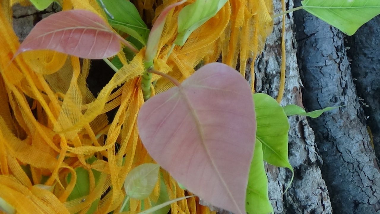 วันที่ 15 ก.ย. นักท่องเที่ยวและคนที่มากราบไหว้พระนอน วัดขุนอินทประมูล อำเภอโพธิ์ทอง จ.อ่างทอง ต่างแปลกใจที่เห็นต้นโพธิ์ออกใบสีชมพู แตกหน่อขึ้นอยู่หลังพระบาทพระนอน ลักษณะเป็นกอ แตกใบอ่อนเป็นสีชมพู สวยงาม มีหลายใบ ลำต้นสูงประมาณ 50 เซนติเมตร จำนวน 2 กอขึ้นอยู่ที่โคนต้นโพธิ์ขนาดใหญ่ที่มีใบสีเขียวปกคลุม
