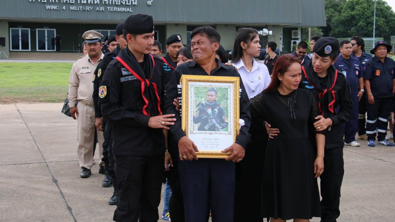 เมื่อเวลา 15.00 น. วันที่ 15 ก.ย.60 ที่บริเวณลานบิน สนามบินกองบิน 4 ตาคลี อ.ตาคลี จ.นครสวรรค์ เจ้าหน้าที่ทหาร มทบ.31 พร้อมด้วยทหารกองเกียรติยศตั้งแถวรับศพวีรบุรุษทหารกล้า ส.ต.ธเนตร พุทโธ อายุ 29 ปี สังกัดหน่วยเฉพาะกิจกรมทหารพรานที่ 47 เสียชีวิตจากเหตุลอบวางระเบิดที่ จ.ยะลา