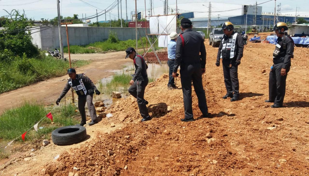 ขณะที่ นางสาวจรินธนิน รัชต์ธรวรินทร์ อายุ 39 ปี อยู่บ้านเลขที่ 29/1 ตำบลเวียงป่าเป้า อำเภอเวียงป่าเป้า จังหวัดเชียงราย เป็นเจ้าหน้าที่เซฟตี้ประจำหน่วยของบริษัทชาญณรงค์เอ็มแอนด์อาร์ จำกัด เล่าว่า ผู้รับเหมาได้ดำเนินการนำดินลูกรังมาถมและกำลังทำการบดอัดหน้าดิน จึงพบกับวัตถุต้องสงสัยดังกล่าว ซึ่งทุกคนคาดว่าอาจจะเป็นวัตถุอันตรายจึงรีบแจ้งเจ้าหน้าที่ตำรวจให้เข้าตรวจสอบ