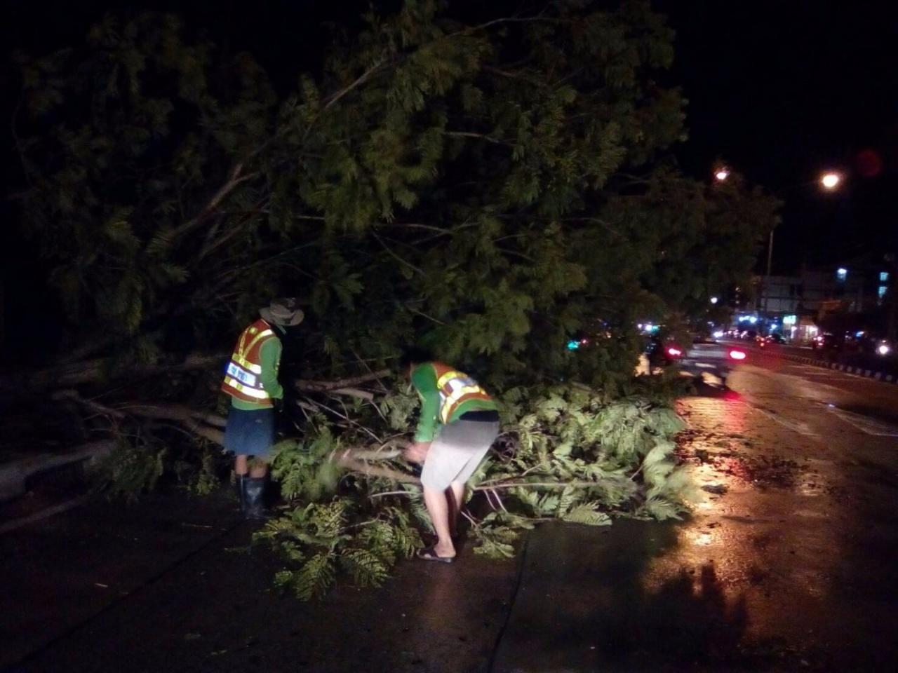 เมื่อช่วงกลางดึก วันที่ 22 ก.ย. พล.ต.ต.กษณะ แจ่มสว่าง รรท.ผบก.ภ. จ.สุพรรณบุรี ได้รับรายงานว่า เกิดลมพายุฝนฟ้าคะนองอย่างรุนแรงในหลายอำเภอ ทำให้เสาไฟฟ้า ต้นไม้ ล้มขวางถนน จึงสั่งการให้เจ้าหน้าที่ตำรวจทุก สภ. ประสานเจ้าหน้าที่แขวงการทาง การไฟฟ้าส่วนภูมิภาค เจ้าหน้าที่มูลนิธิเสมอกัน และหน่วยกู้ภัยเณรแก้ว นำเครื่องมือออกช่วยเหลือประชาชนที่ได้รับผลกระทบ บริเวณ ทล.340 ช่วง อ.บางปลาม้า (บางยี่หน-โพธิ์คอย) ทล.340 ช่วง อ.ศรีประจันต์ (พังม่วง-บ้านกล้วย) ทล.321 ช่วง อ.เมือง (บางปลาหมอ) ทล.357 เลี่ยงเมือง (สามเหลี่ยม-ทางรถไฟ) ทล.3318 อ.เมือง (กุฎีทอง-เลี่ยงเมือง) ทล.333 กม.35-36 (สระกระโจม)