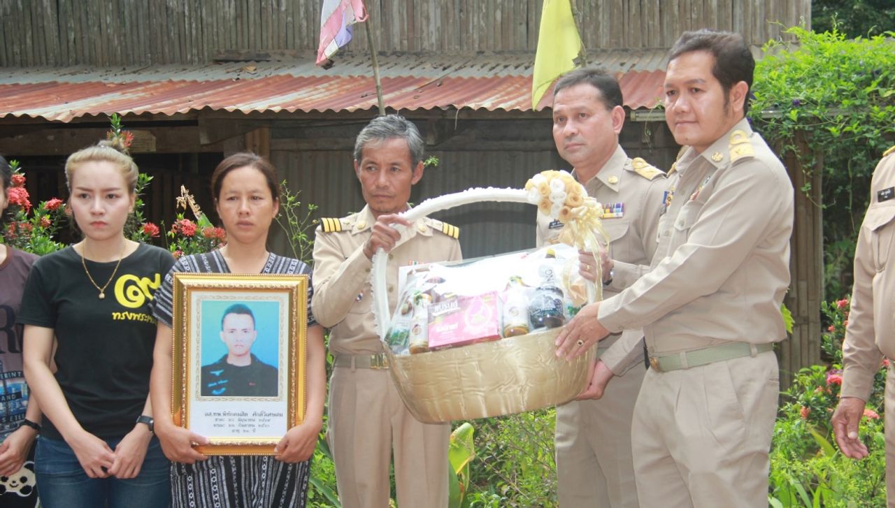 เวลา 10.00 น. วันที่ 24 ก.ย. ที่บ้านเลขที่ 25 ม.6 ต.ป่าเด็ง อ.แก่งกระจาน จ.เพชรบุรี นายณัฐวุฒิ เพ็ชรพรหมศร รอง ผวจ.เพชรบุรี ได้เชิญตระกร้าสิ่งของพระราชทานฯไปมอบให้กับบิดามารดาและพี่น้อง ของอาสาสมัครทหารพรานพิทักษ์คมศิต ศักดิ์วิเศษสม ยังความปลาบปลื้มในพระกรุณาธิคุณเป็นล้นพ้น