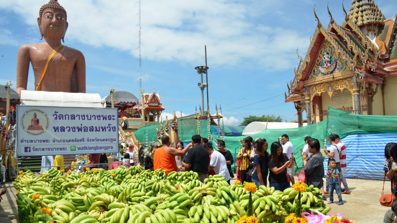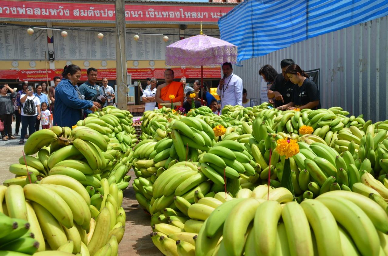 วันที่ 24 ก.ย.60 ที่วัดกลางบางพระ ต.บางพระ อ.นครชัยศรี จ.นครปฐม นางจันทร์เพ็ญ วงษ์สวรรค์ และนายบุญเสริม หาญสมัย นายก อบต.บางพระ เป็นตัวแทนบริษัทแห่งหนึ่งใน จ.นครราชสีมา นำกล้วยหอมคาเวนดิช ชนิดเขียว 2 ตัน มาถวายแก้บน องค์หลวงพ่อสมหวัง พระพุทธรูปใหญ่สูง 30 เมตร